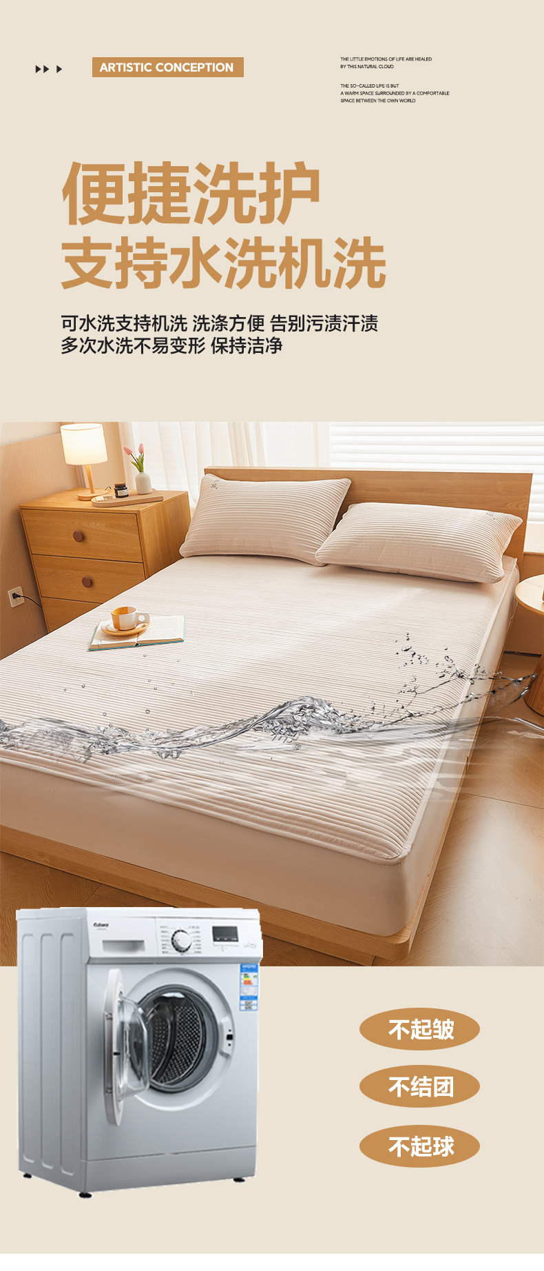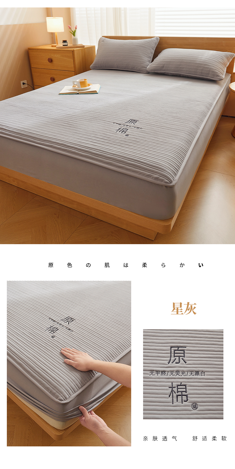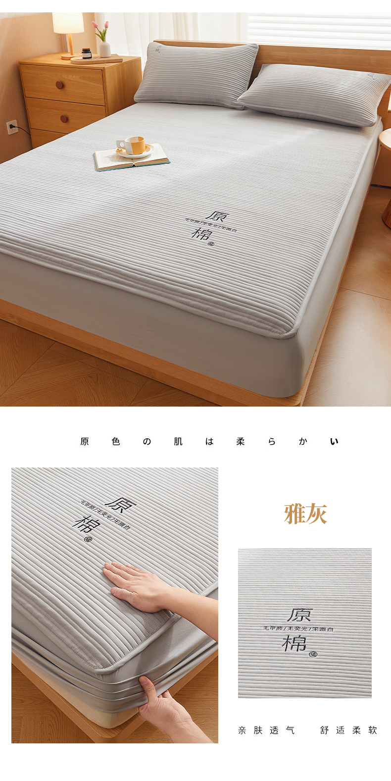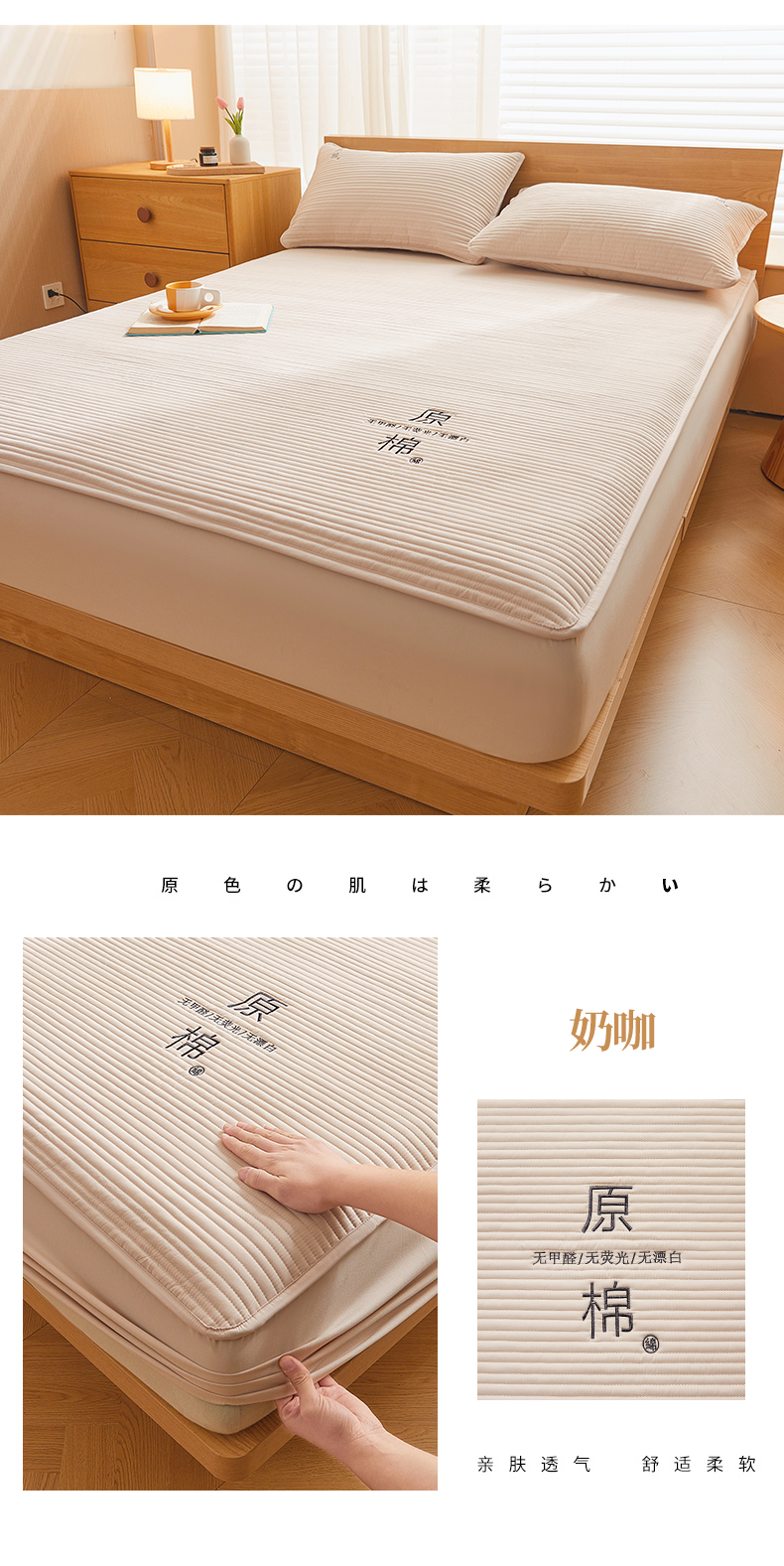 商品名称:(总)喜居 2024新款原棉大豆夹棉床笠三件套纯色床笠床垫保护套
