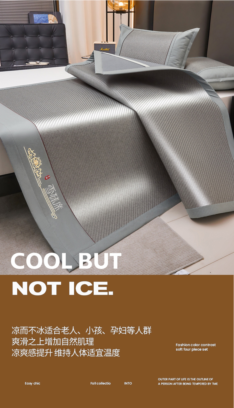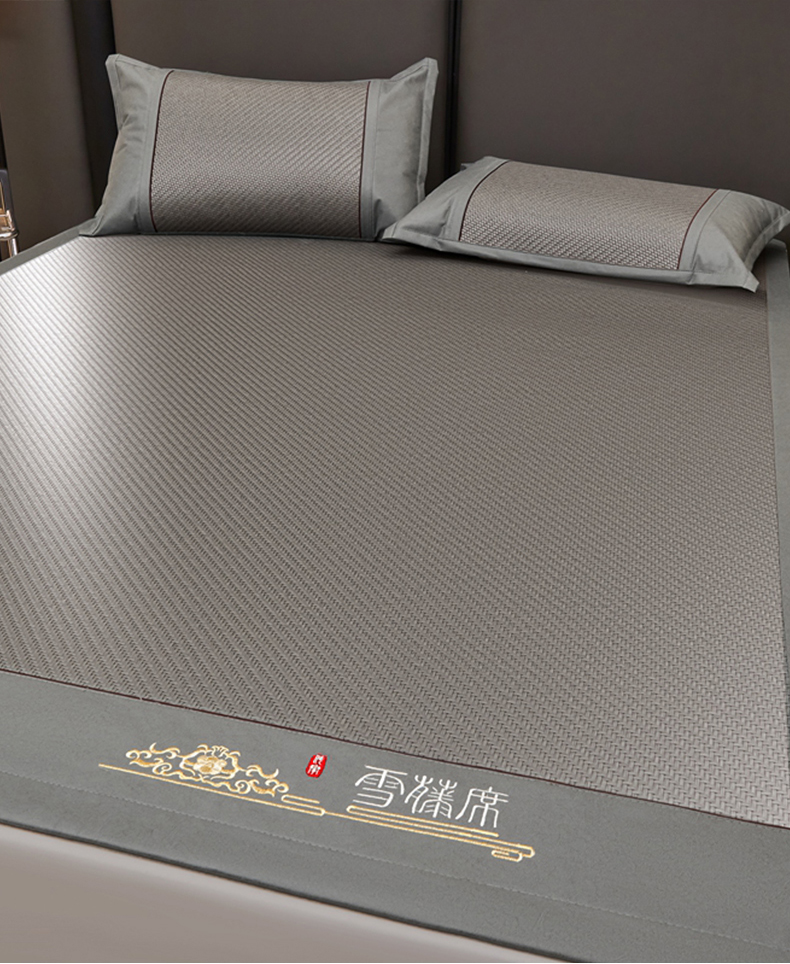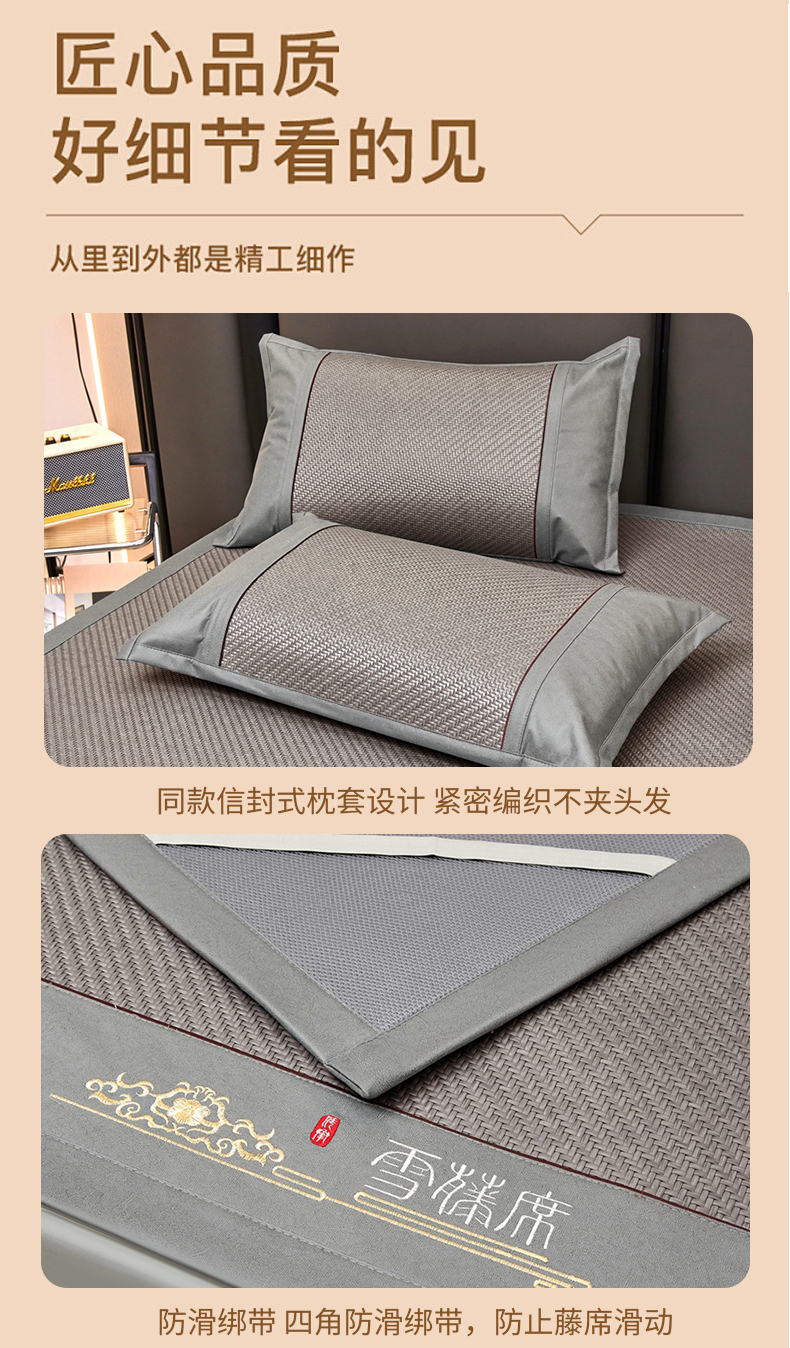 (总)席都 2024新款冰藤席床席三件套-三明治-冰藤席系列,灰,金,绿,粉,蓝