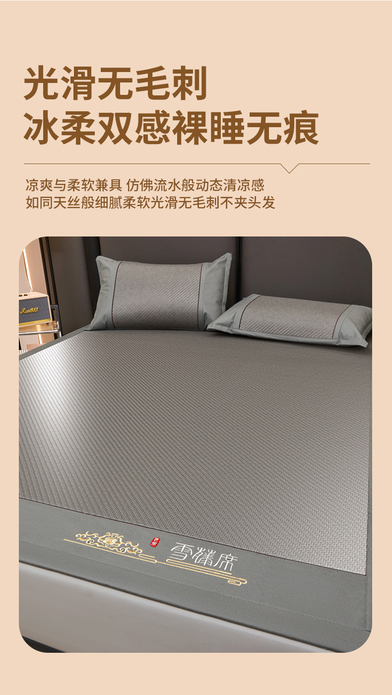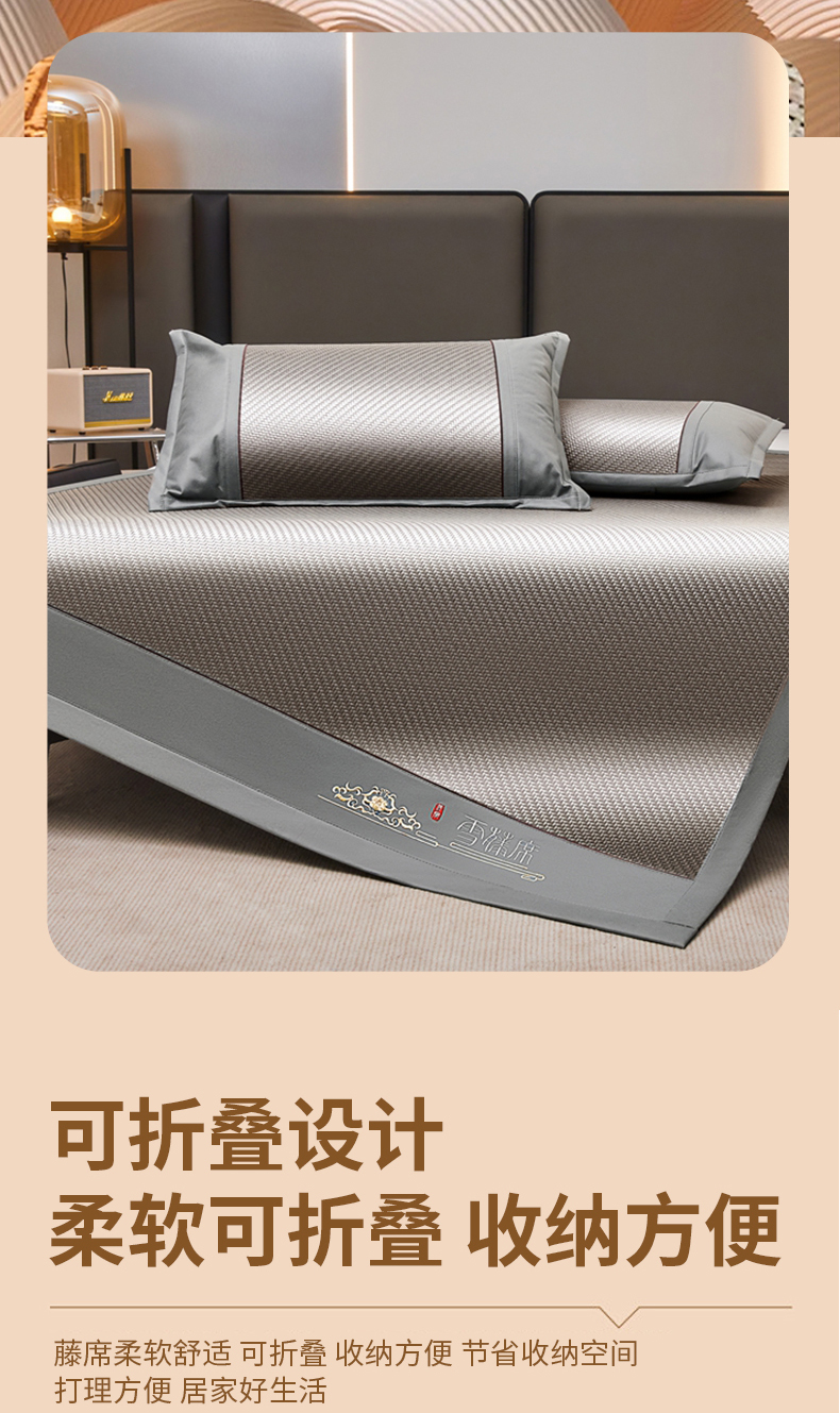 (总)席都 2025新款舒爽藤席系列—雪藤席3D复合乙伦凉感裸睡PE凉席三件套床席款