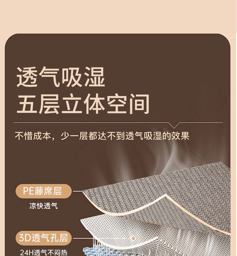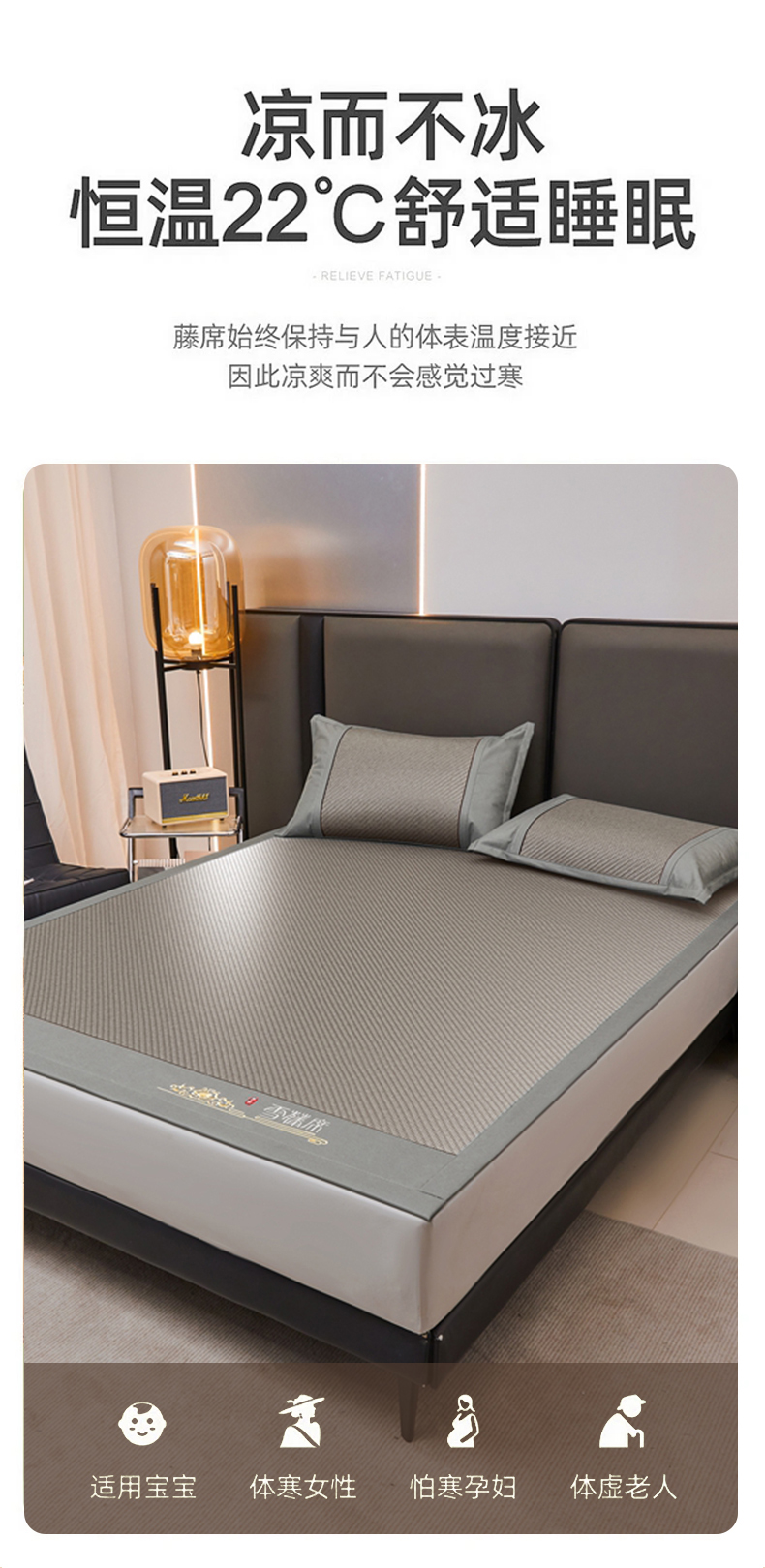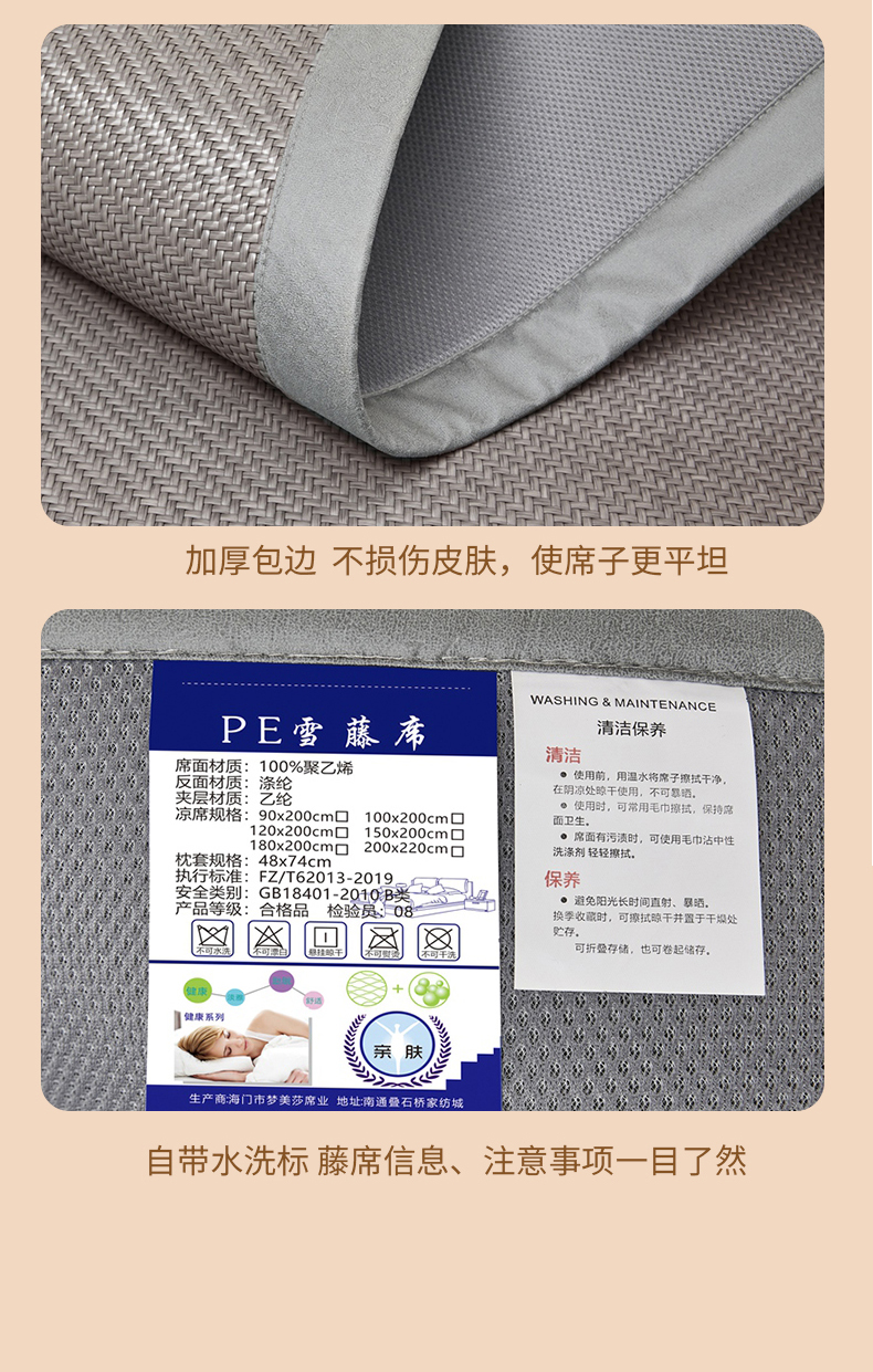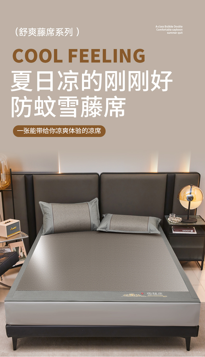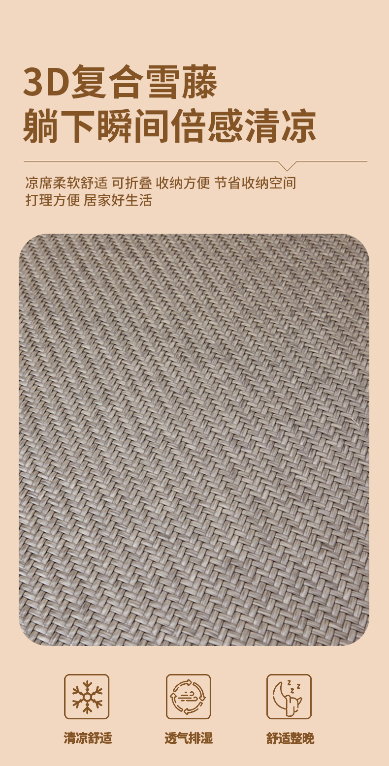 商品名称:(总)席都 2025新款舒爽藤席系列—雪藤席3D复合乙伦凉感裸睡PE凉席三件套床席款