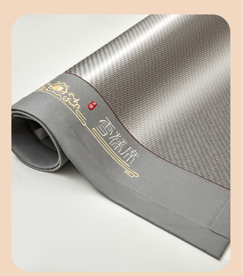 (总)席都凉席工厂店2025新款绣花冰藤席三件套-三明治系列-银杏叶,灰色,金色,绿色