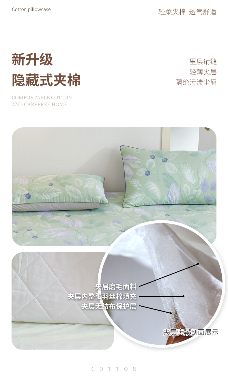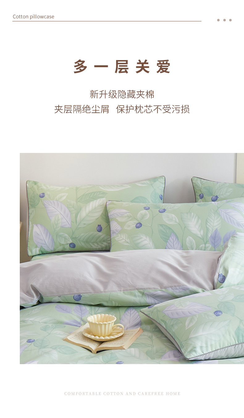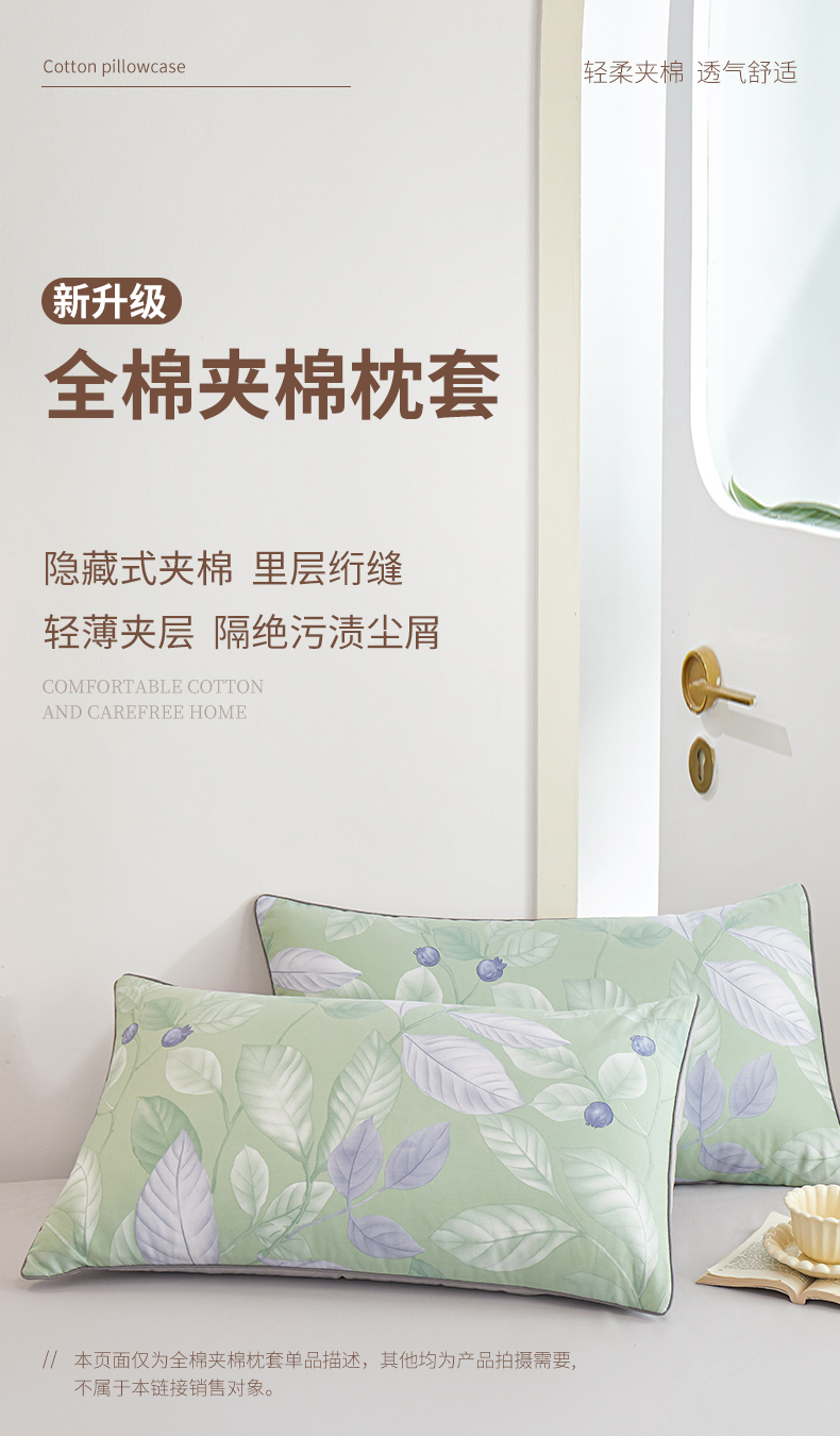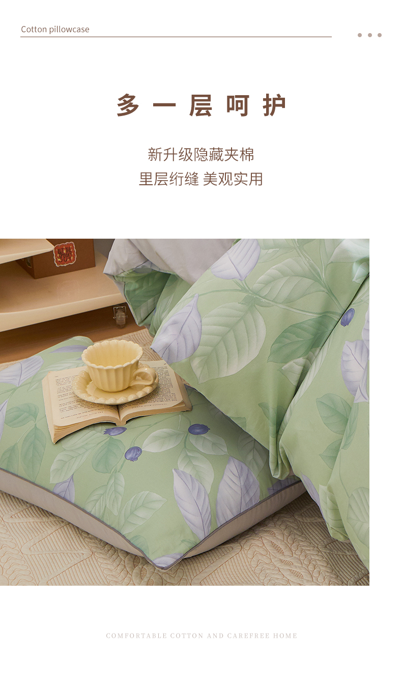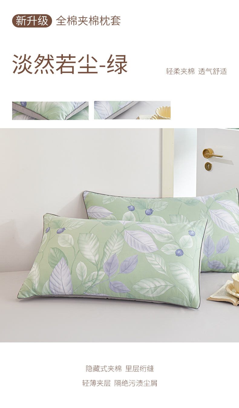 商品名称:元元 2024新款小清新隐藏式夹棉套件单品-夹棉枕套 淡然若尘-绿