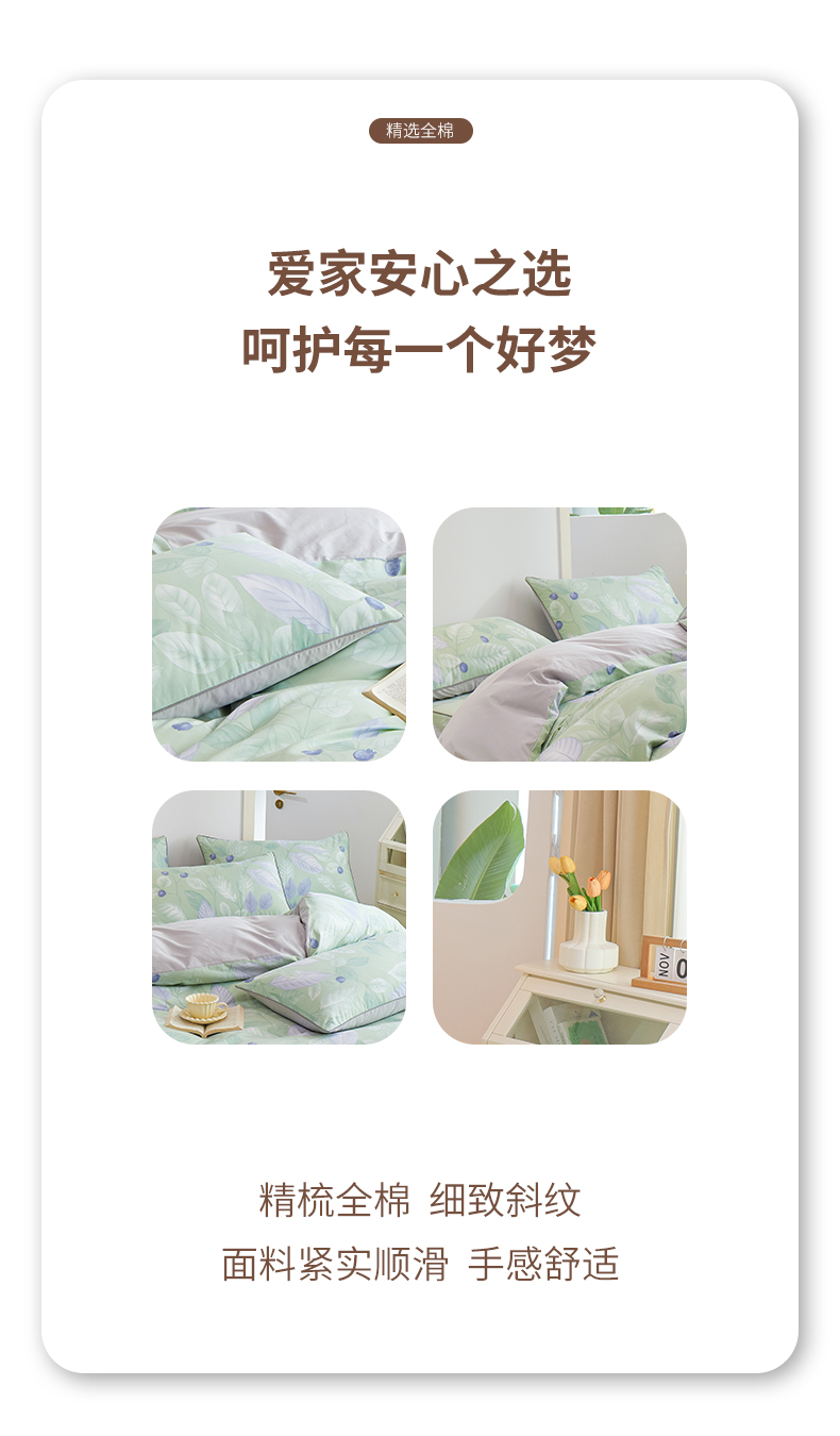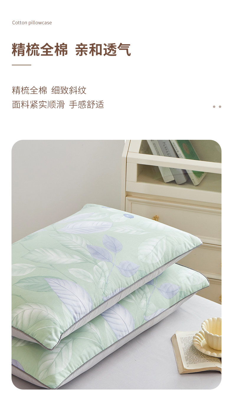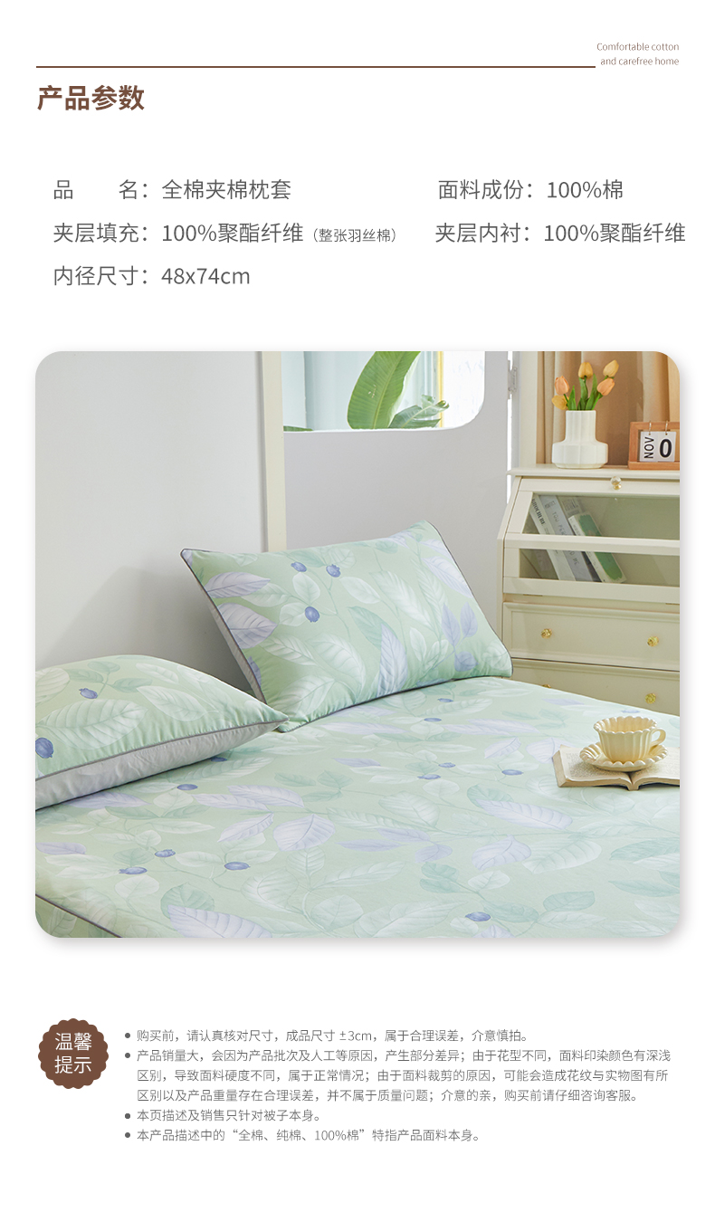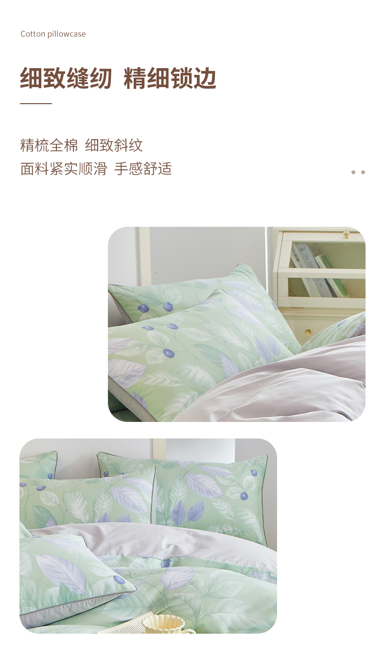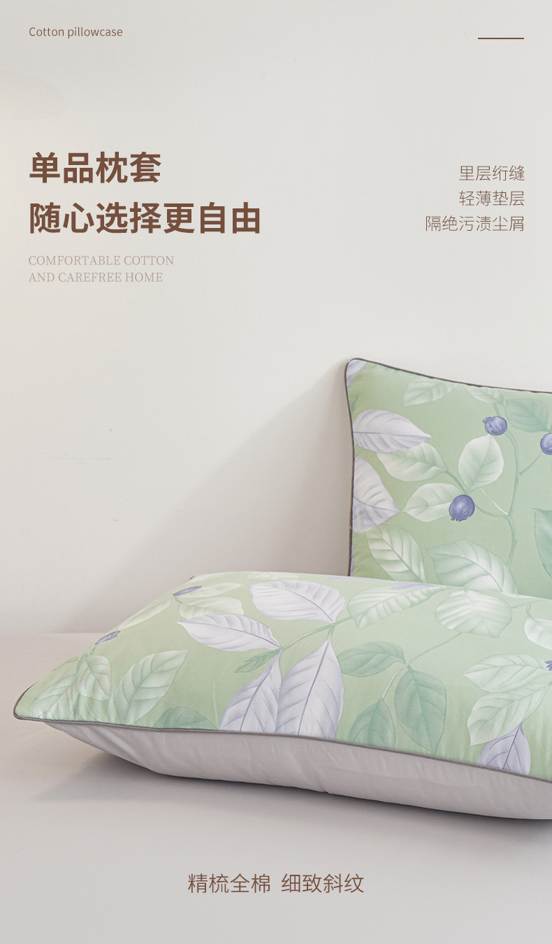 商品名称:元元 2024新款小清新隐藏式夹棉套件单品-夹棉枕套 淡然若尘-绿