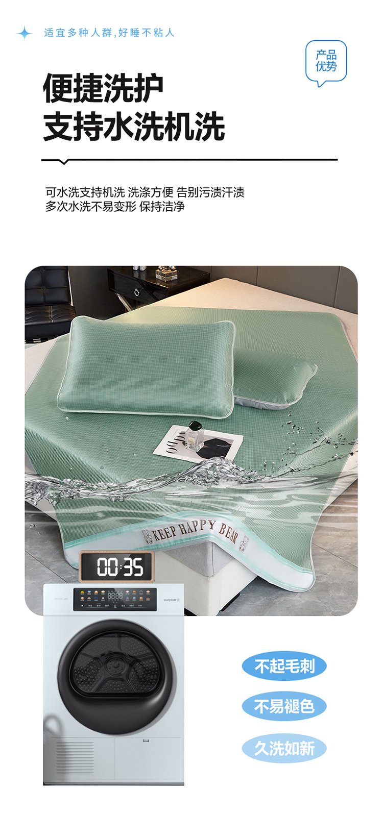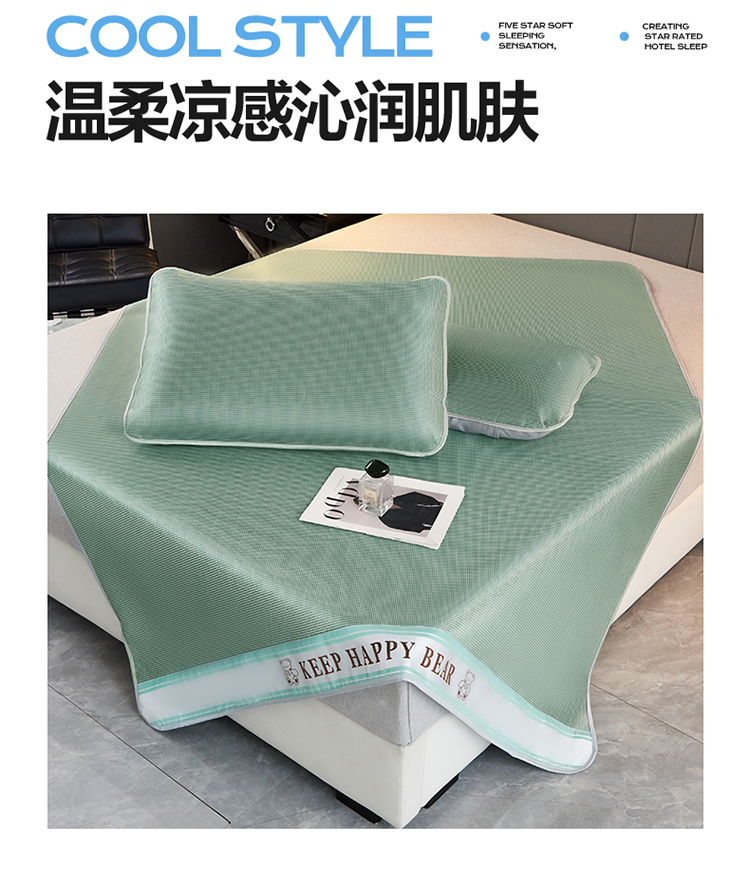商品名称:福来临家纺 2025新款碳光冰丝席凉席-小熊系列-小包边 小熊(小包边)水绿