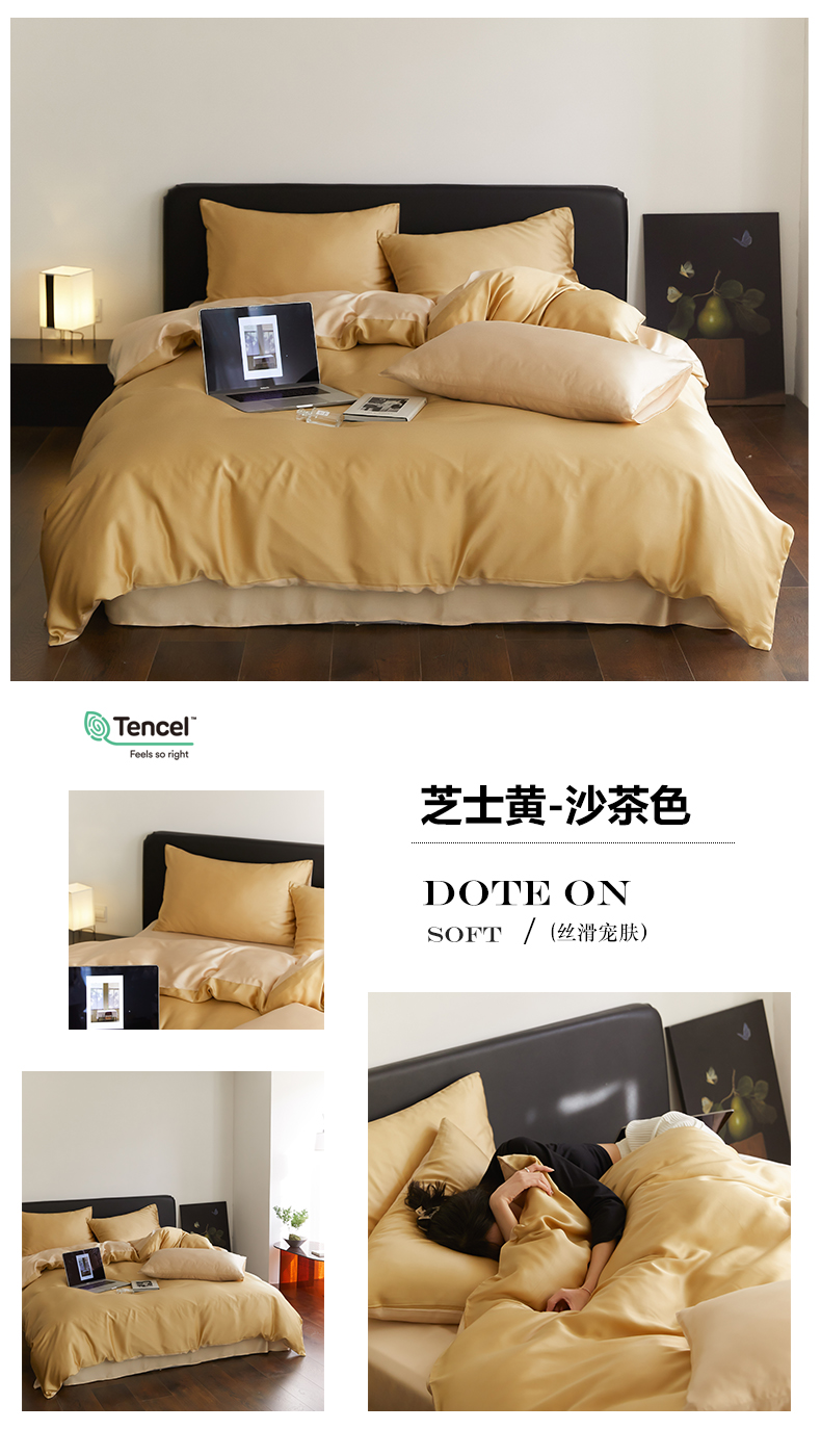商品名称:沐晴家纺 2025新款60兰精天丝简约轻奢纯色四件套 芝士黄-沙茶色