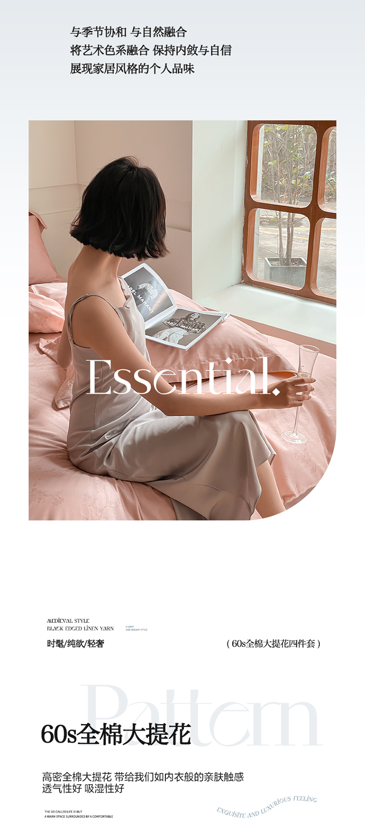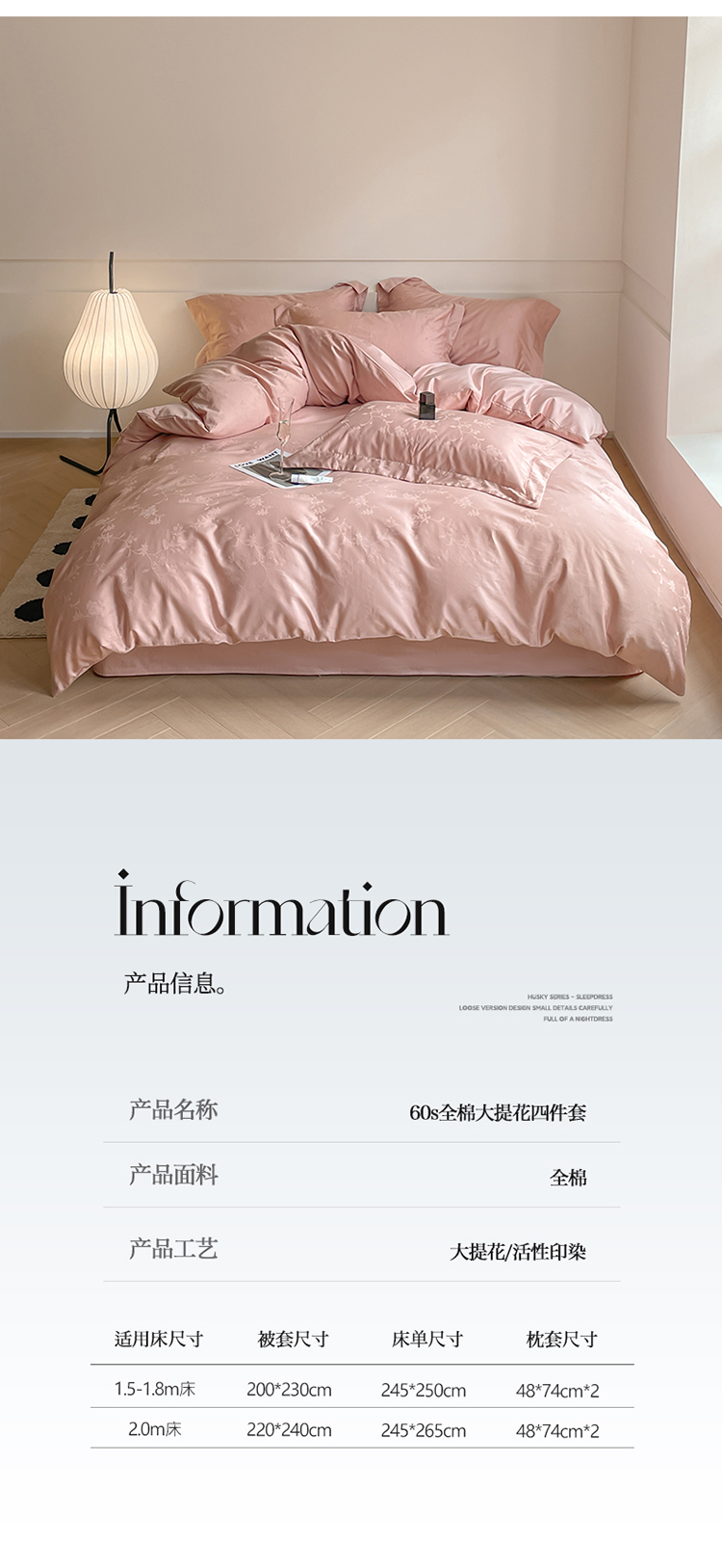 商品名称:涵宸 2024新款全棉大提花系列四件套 生如夏花-粉