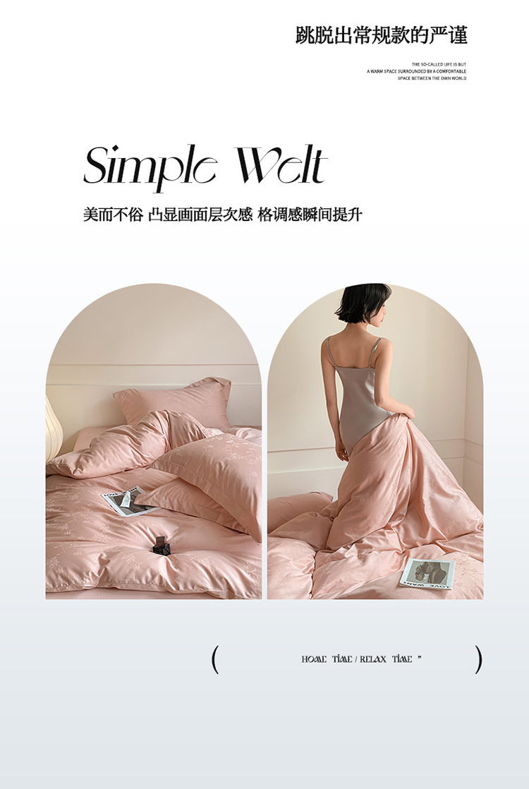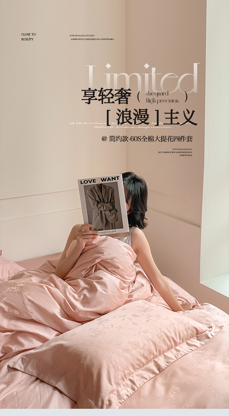 涵宸 2024新款全棉大提花系列四件套 生如夏花-粉