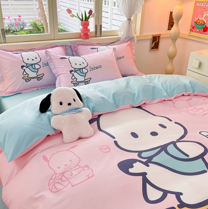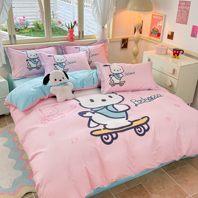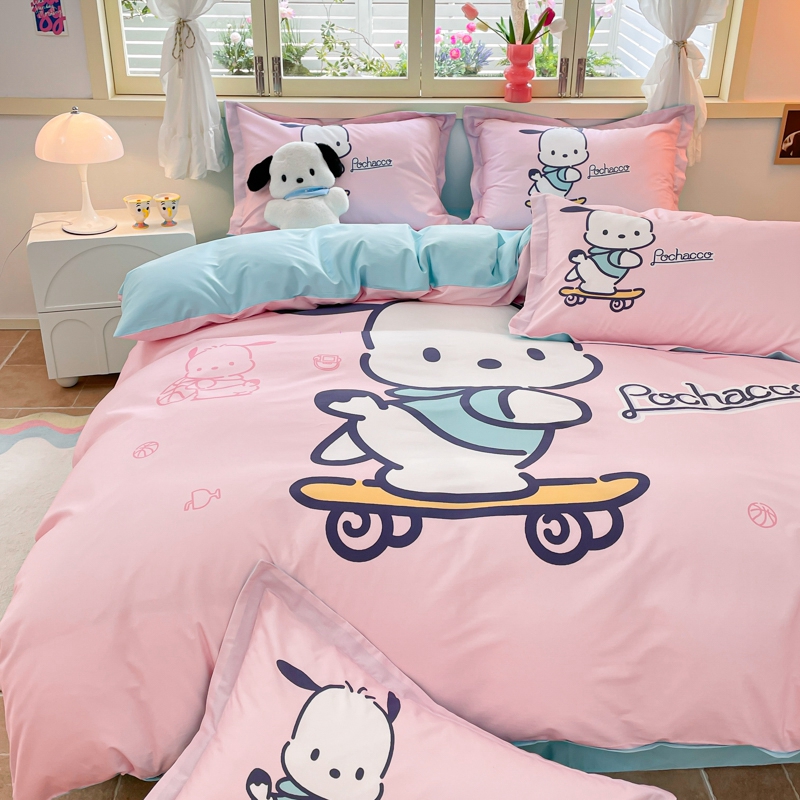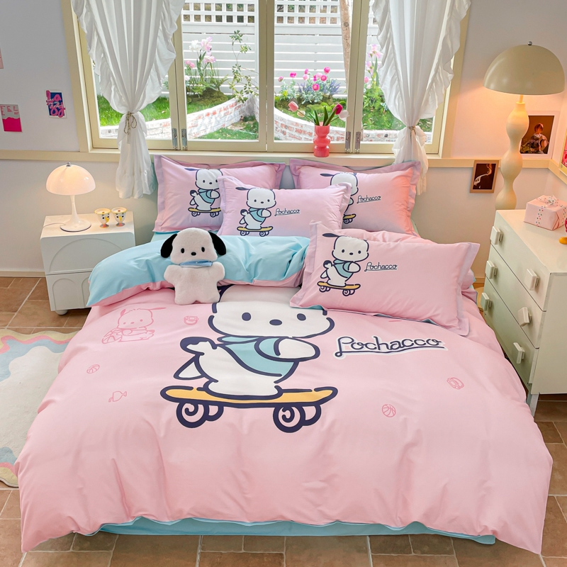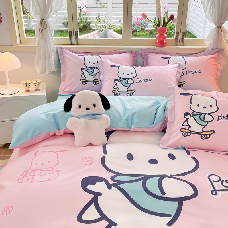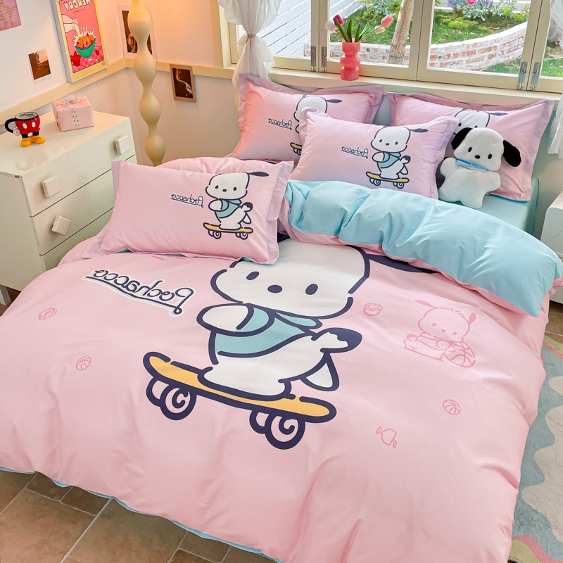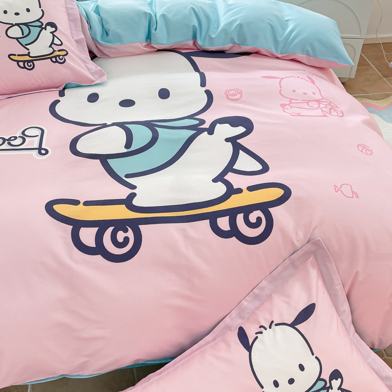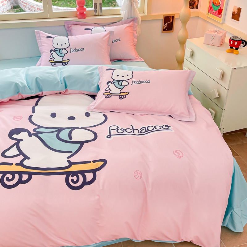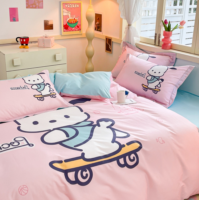 当前位置: 91家纺网 > 商品网购 > 床品套件 > 四件套 > 全棉普通四件套 > 孩子王(原鼎盛) 2025新款三丽鸥系列全棉活性大版印花卡通学生四件套 滑板帕恰狗