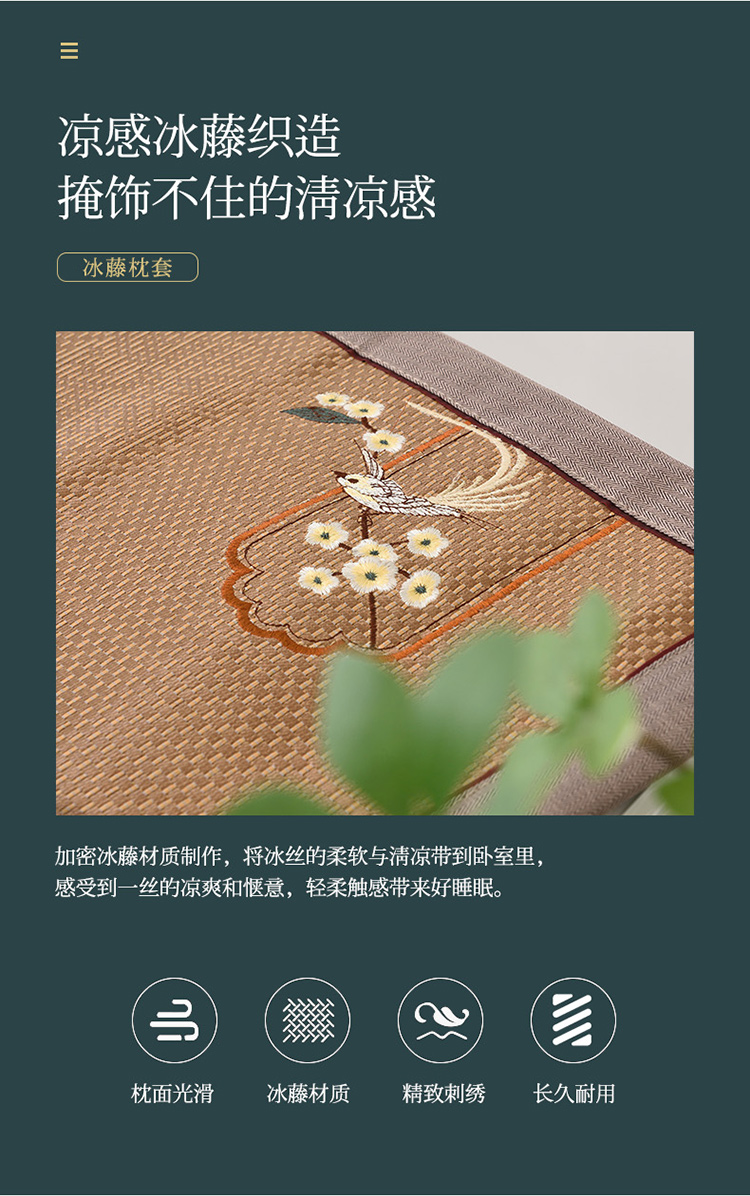 商品名称:丹兰 2025新款夏季凉席枕套成人藤枕芯套单人冰丝枕头套夏天凉爽竹席枕套 小鹿冰藤枕套