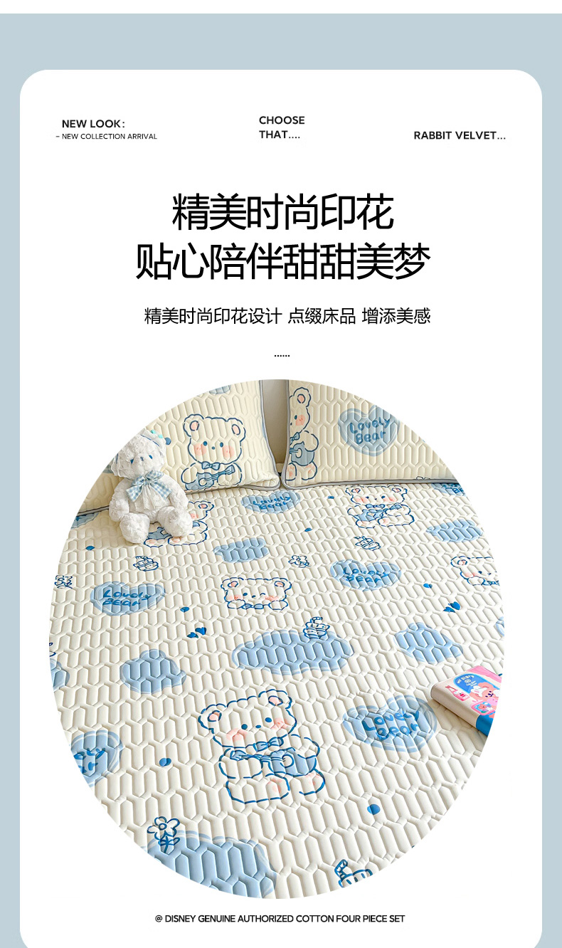 (总)沐慕 2025新款A类200g加厚雪花绒180g牛奶绒四件套,黄油小熊,爱心小熊,豹纹猫咪,彩虹,草莓兔,蛋糕兔,蛋糕小兔,粉嫩郁金香,花花粉兔,可爱熊,小橘子,星星月亮,熊猫伙伴,雪纳瑞,字母萌宠
