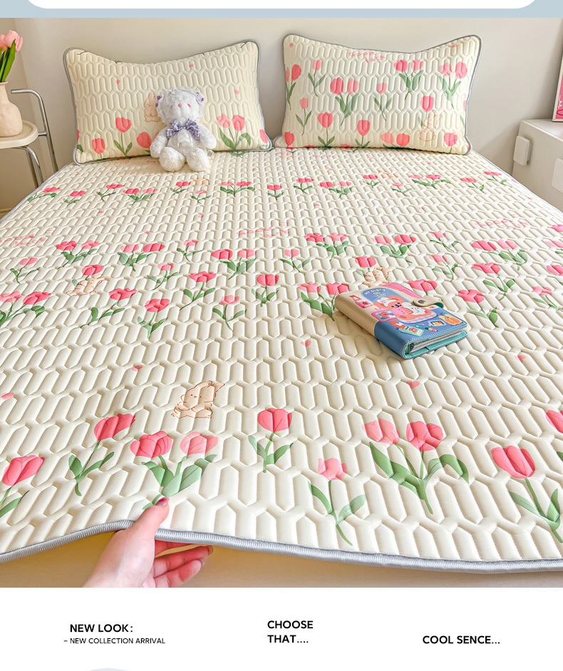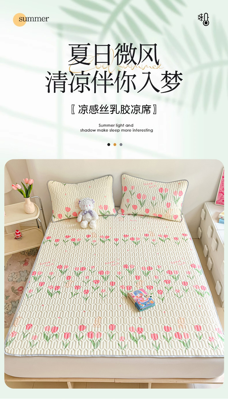沐慕 2024新款小清新印花乳胶凉席 甜蜜小兔