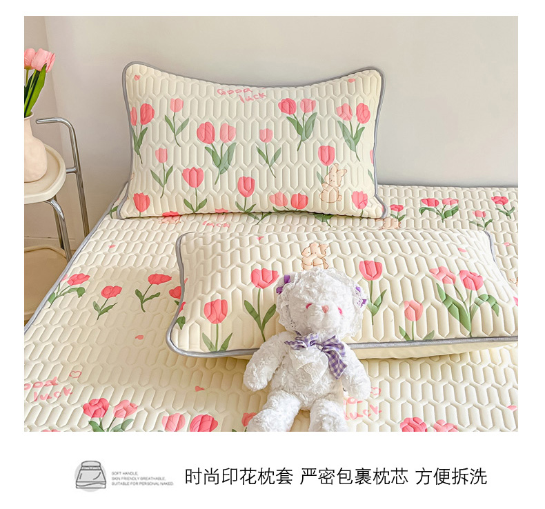 商品名称:沐慕 2024新款小清新印花乳胶凉席 甜蜜小兔