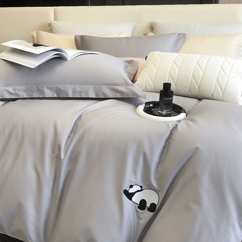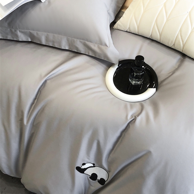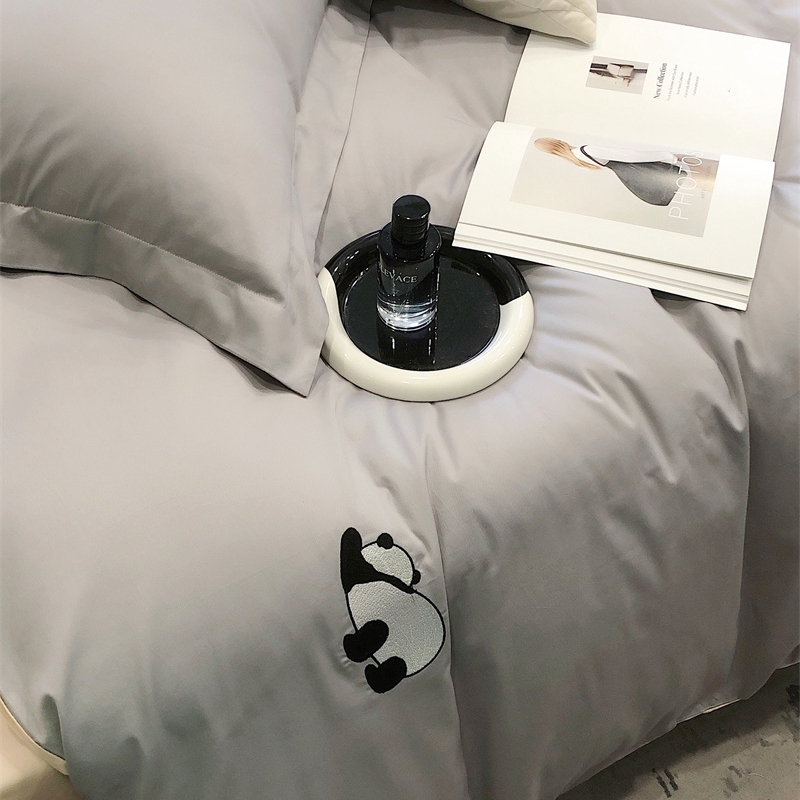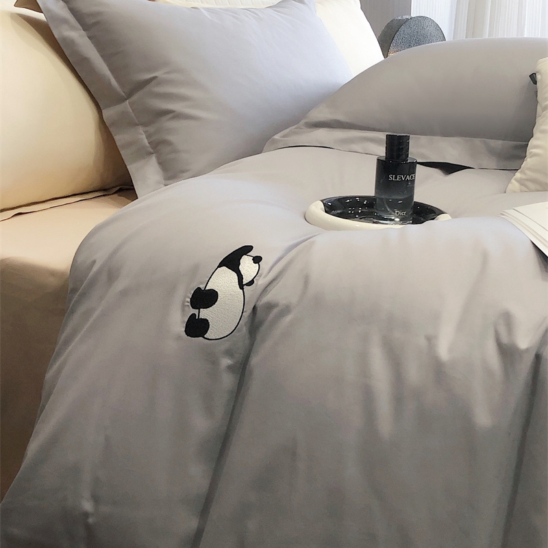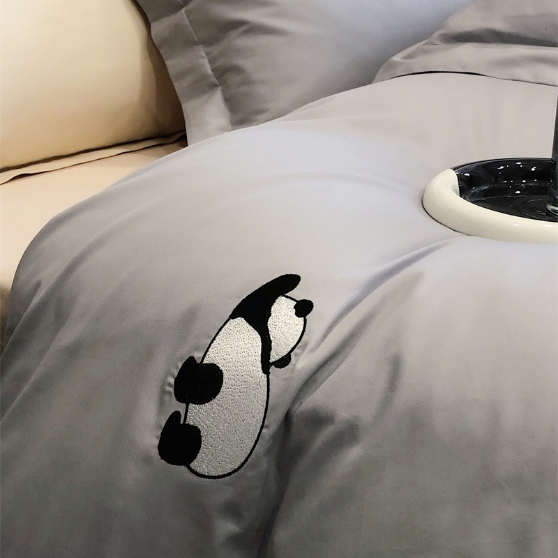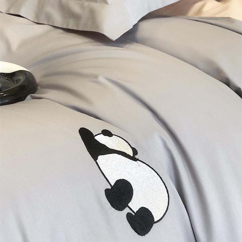 商品名称:佳汐蓝 2024新款全棉绣花四件套-熊猫系列 熊猫系列-灰熊