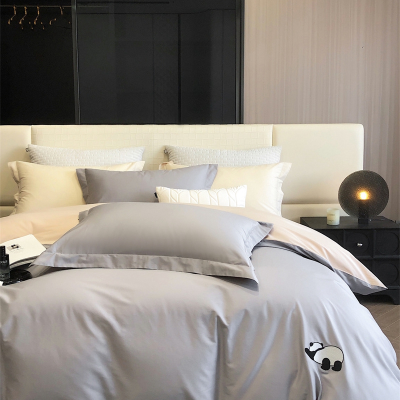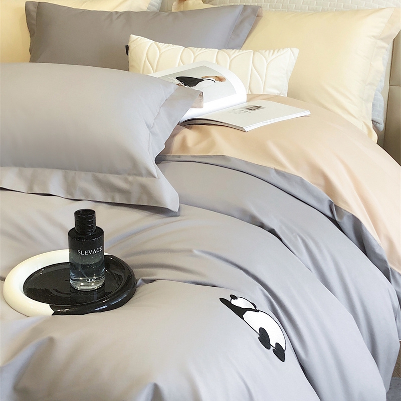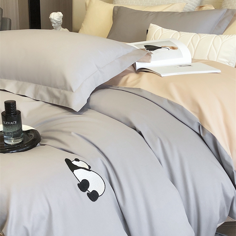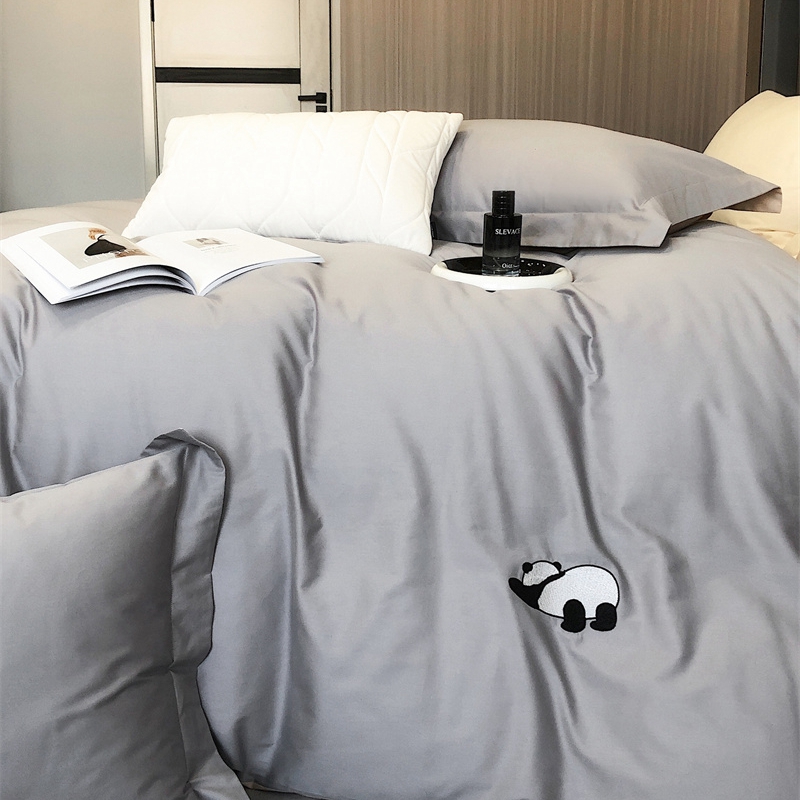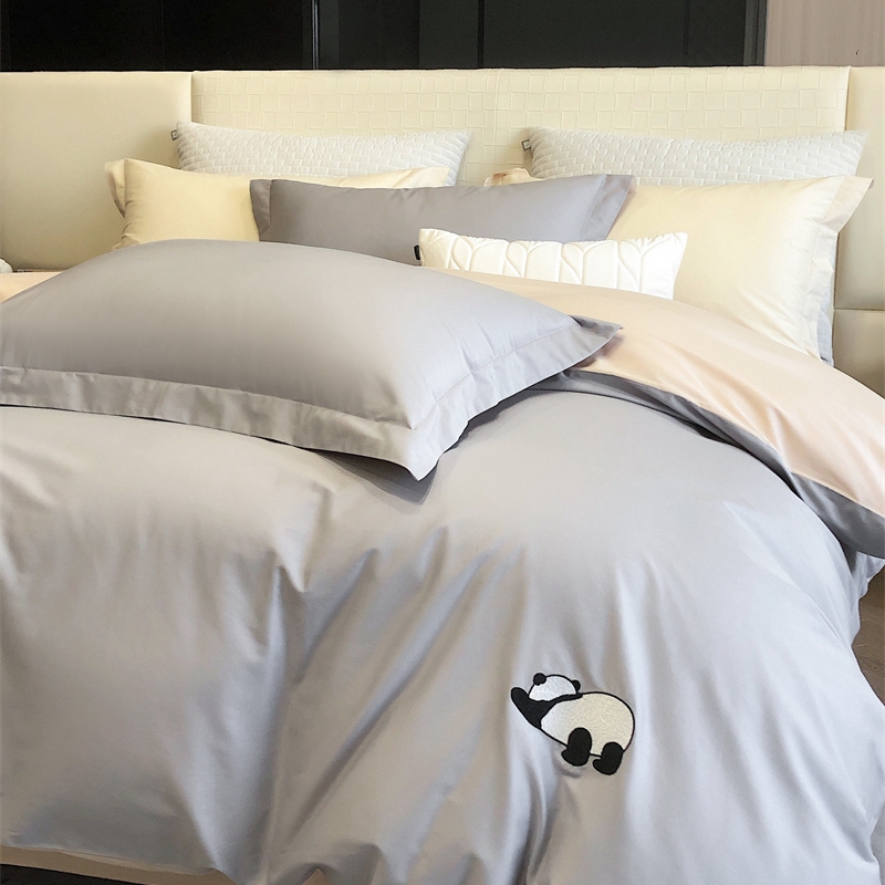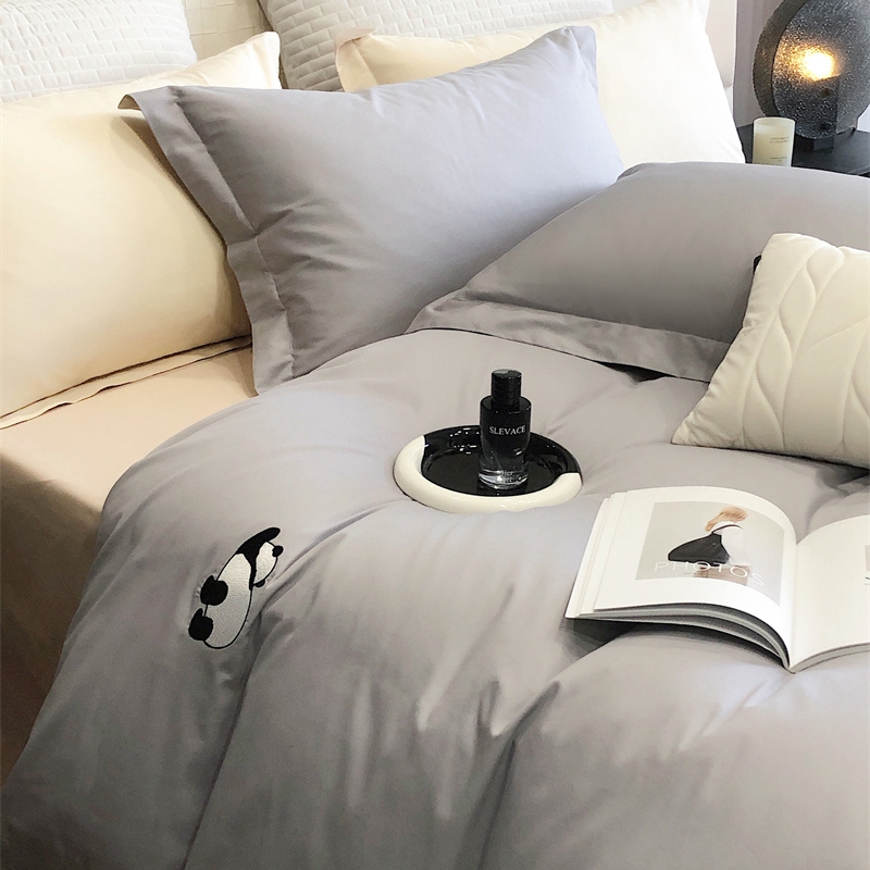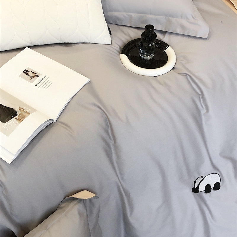 商品名称:佳汐蓝 2024新款全棉绣花四件套-熊猫系列 熊猫系列-灰熊