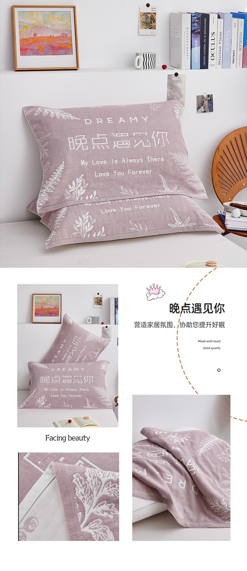 (总)美宜家 2025新款四层全棉纱布婚庆枕巾枕套枕头,百年好合,吉祥如意,喜上眉梢,喜气洋洋,喜结良缘,喜结连理,心心相印,欢欢喜喜,浪漫爱情,双喜临门,真爱永恒,花好月圆