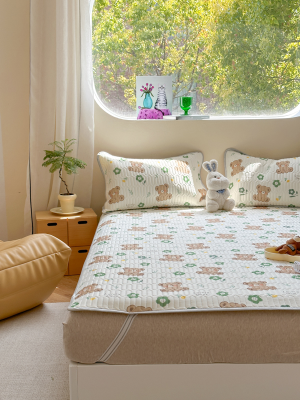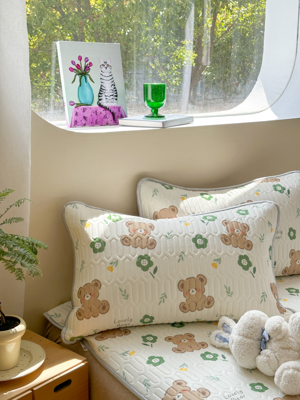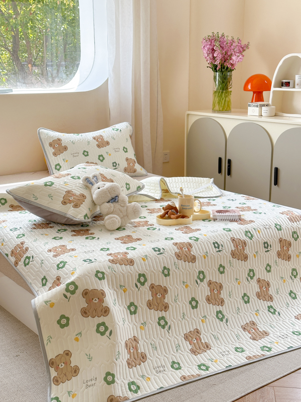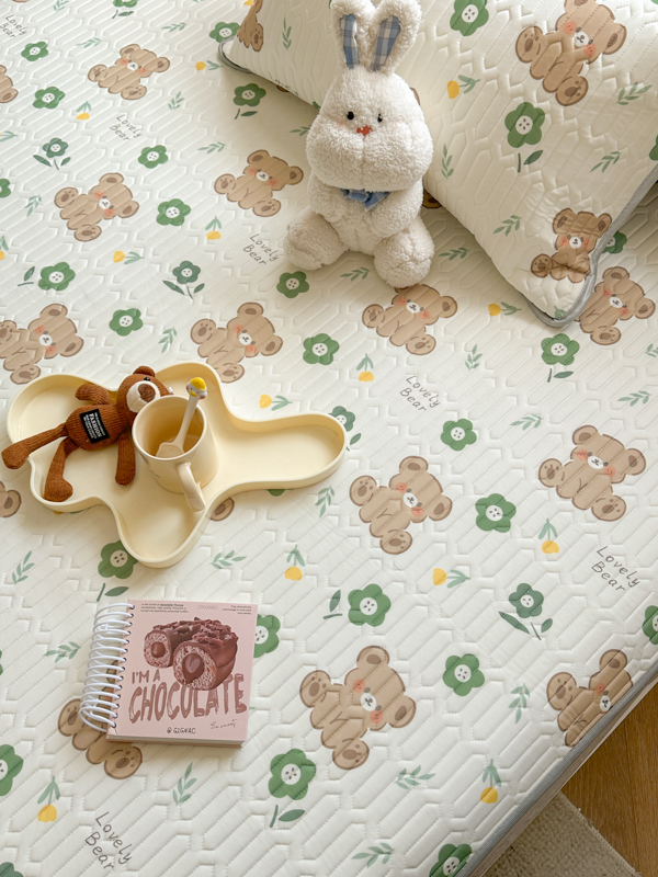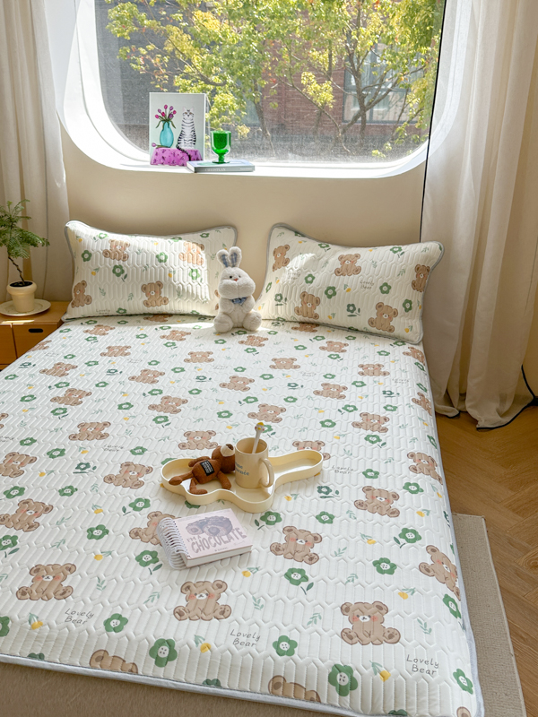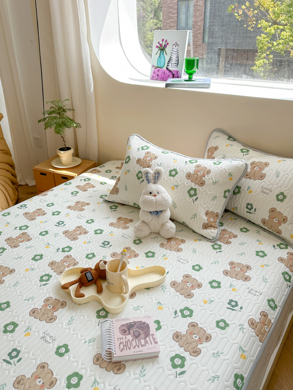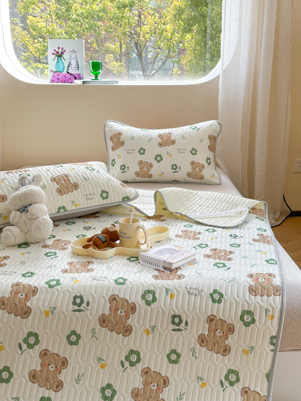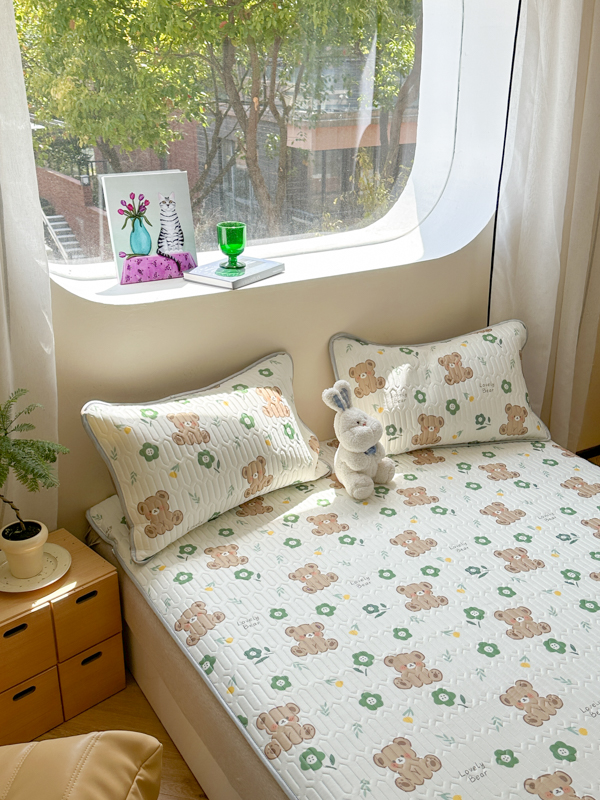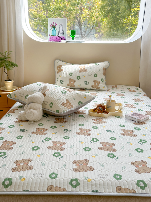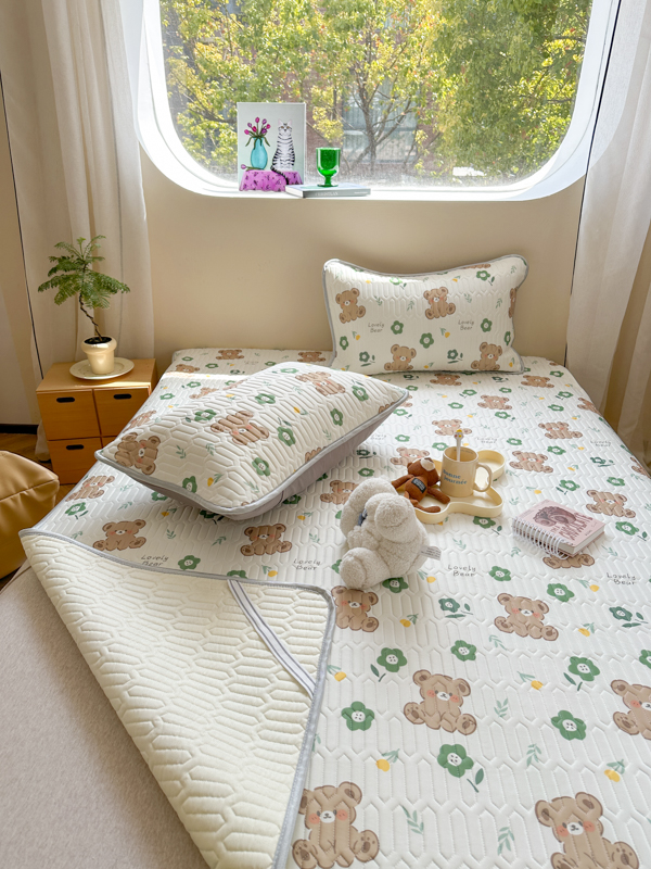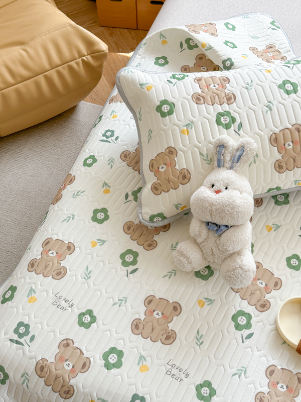 慕尚家纺 2025新款凉感丝印花乳胶凉席 绿意小熊