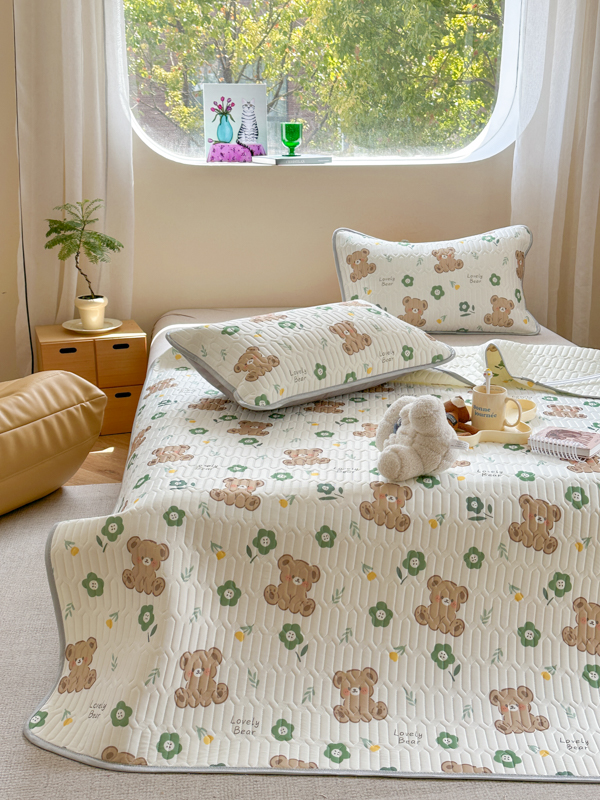 商品名称:慕尚家纺 2025新款凉感丝印花乳胶凉席 绿意小熊