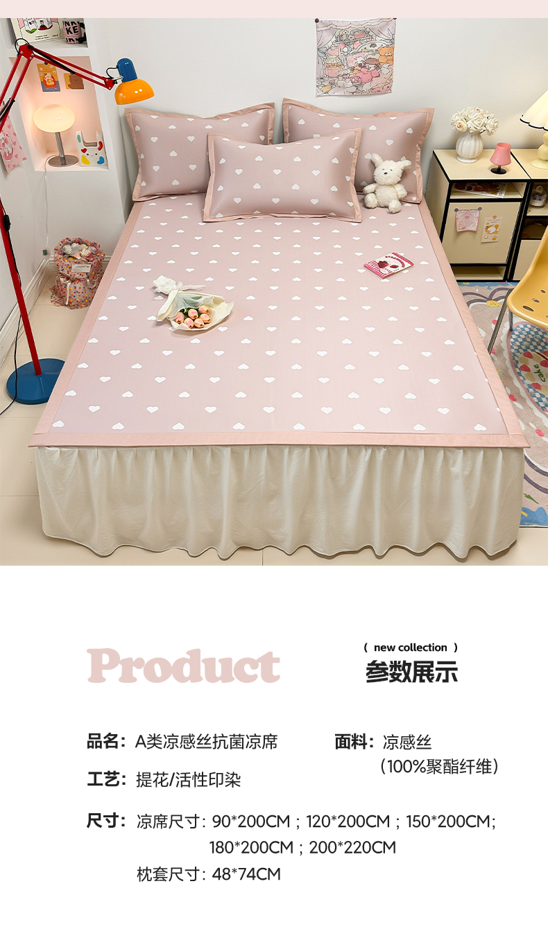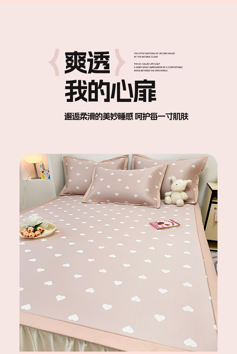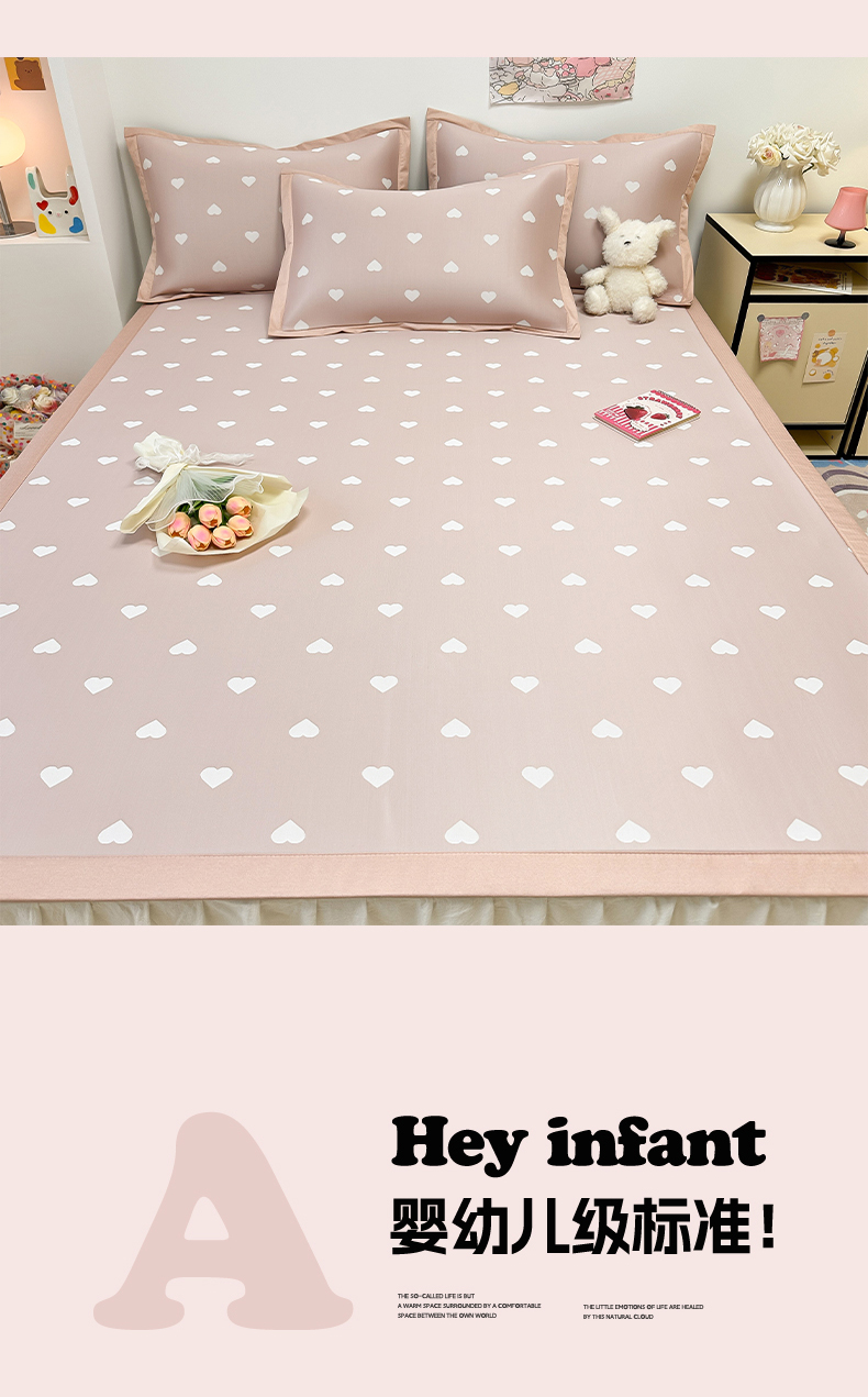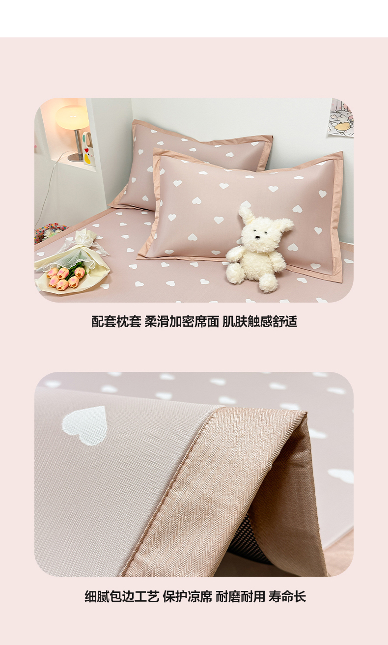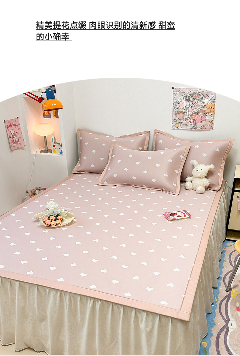 商品名称:全季家居 2024新款卡通提花系列PE凉感席 爱心-山茶粉