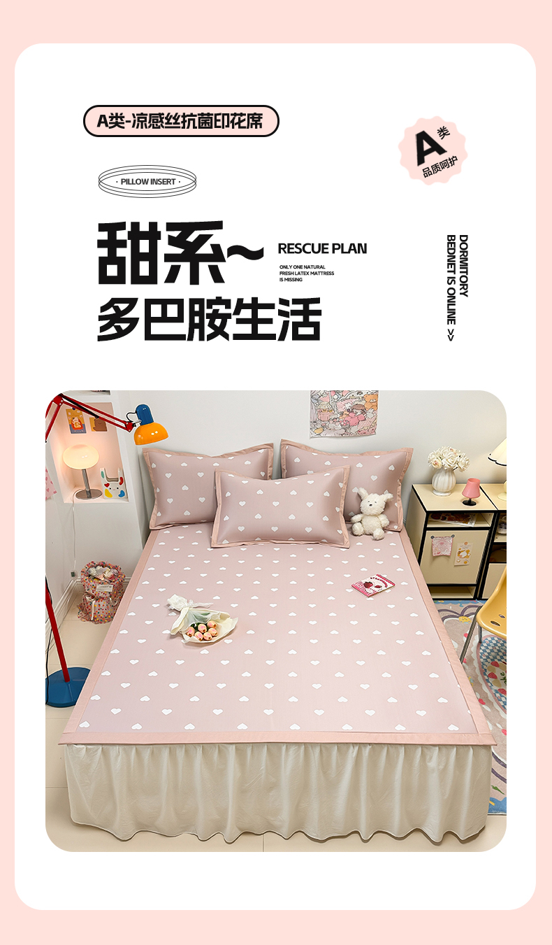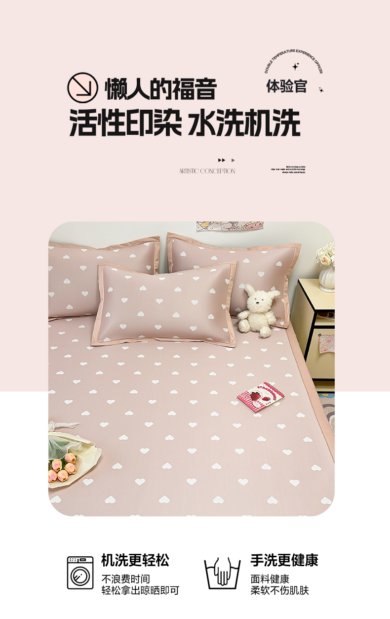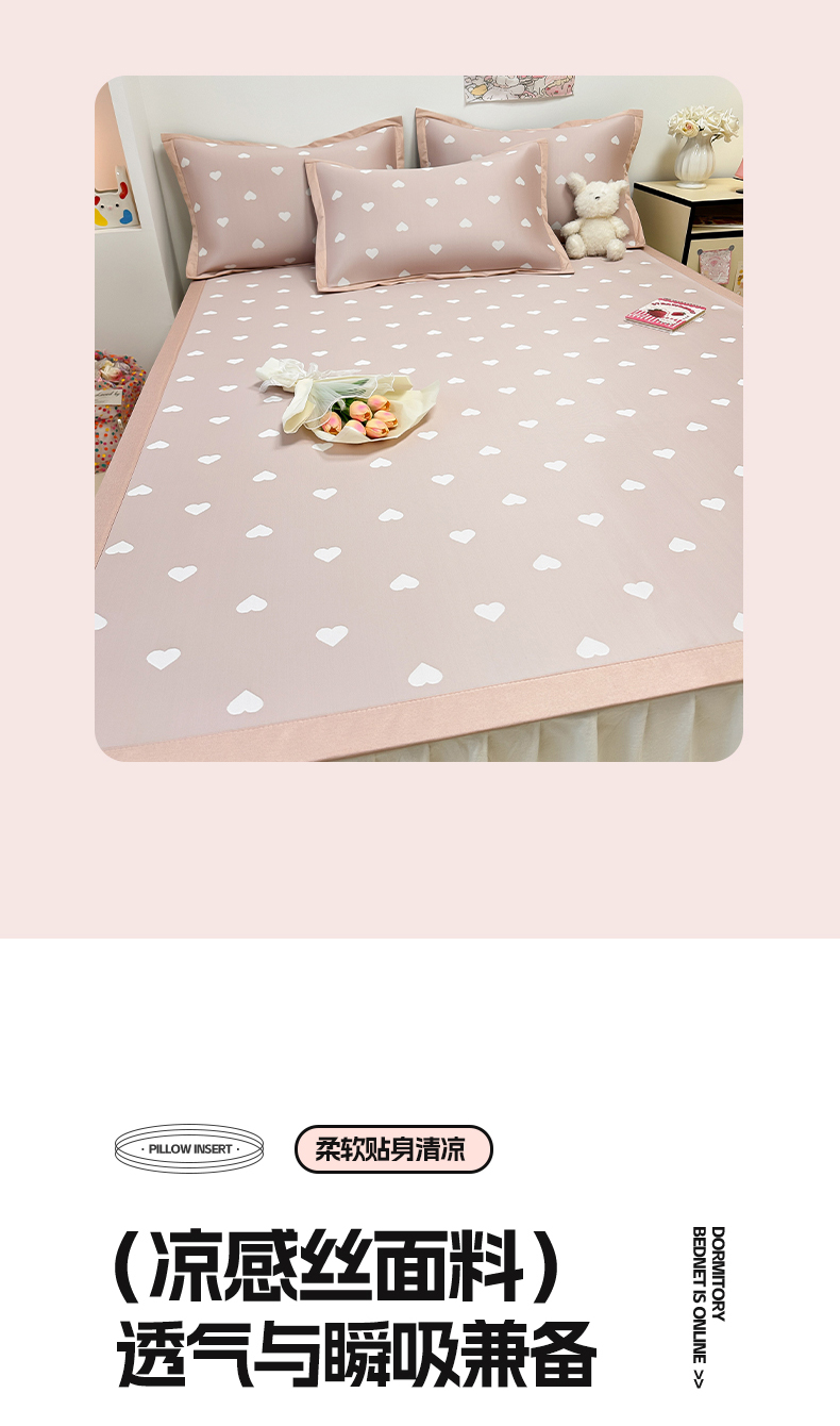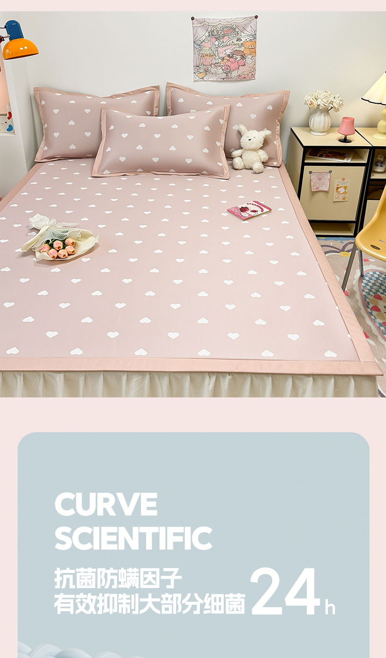 商品名称:全季家居 2024新款卡通提花系列PE凉感席 爱心-山茶粉
