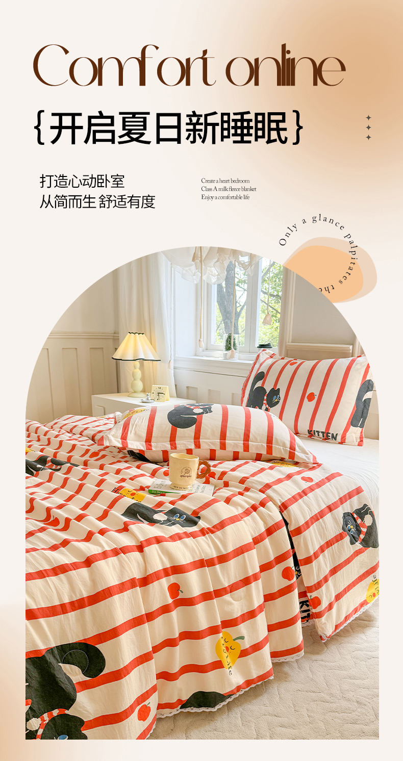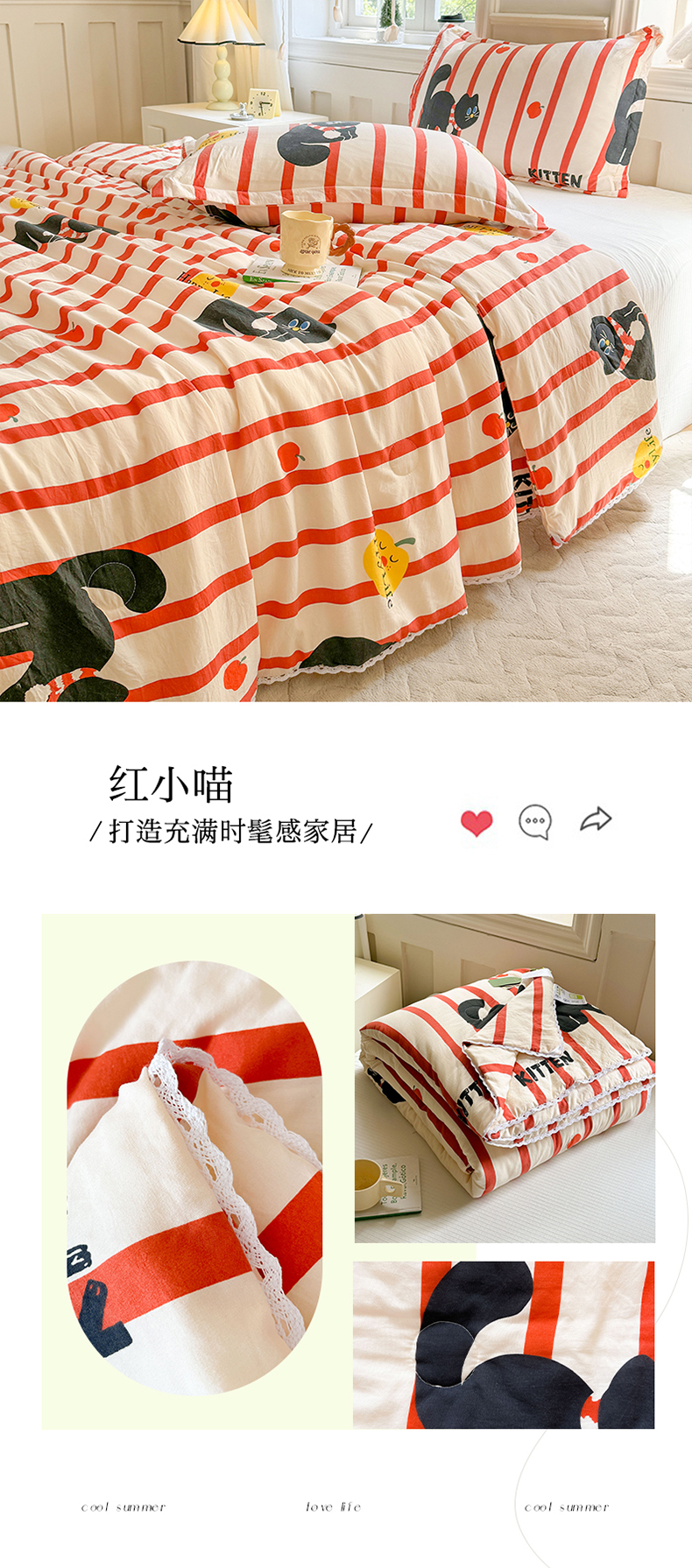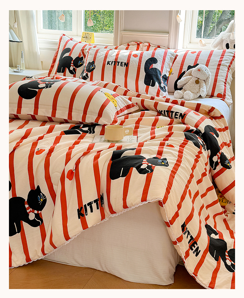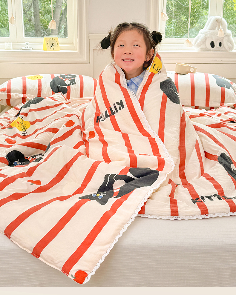 创优家纺 2025新款A类皱皱纱小花边夏被 红小喵