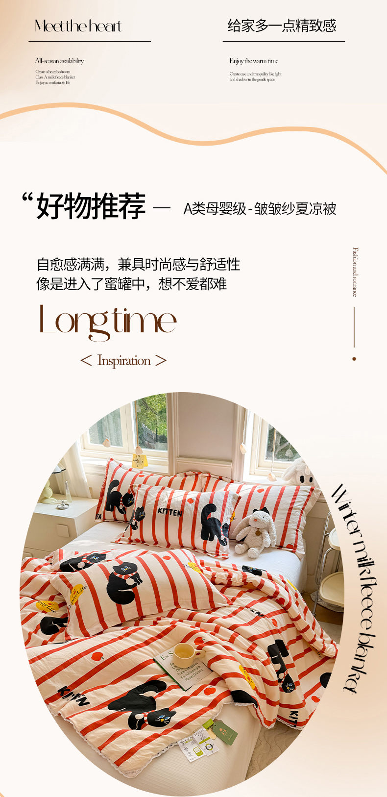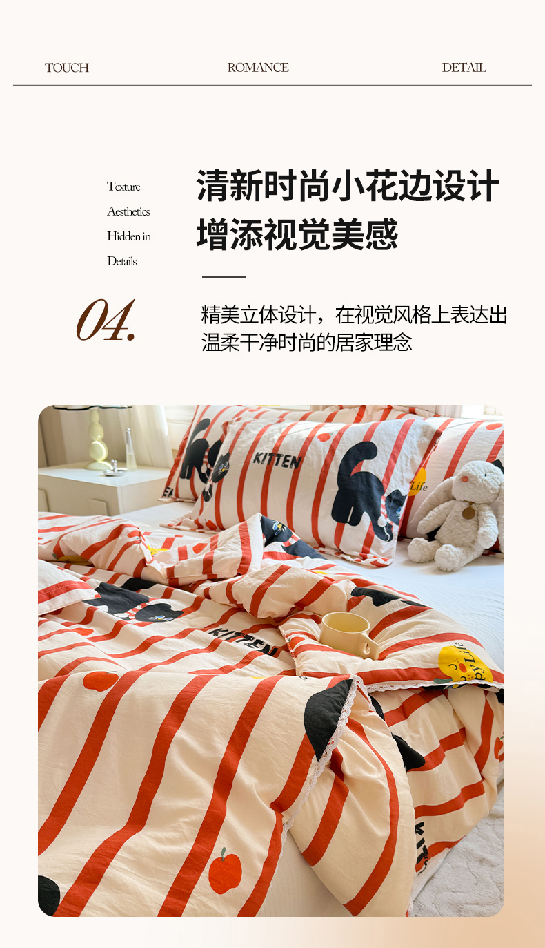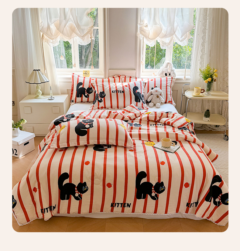 创优家纺 2025新款A类皱皱纱小花边夏被 红小喵
