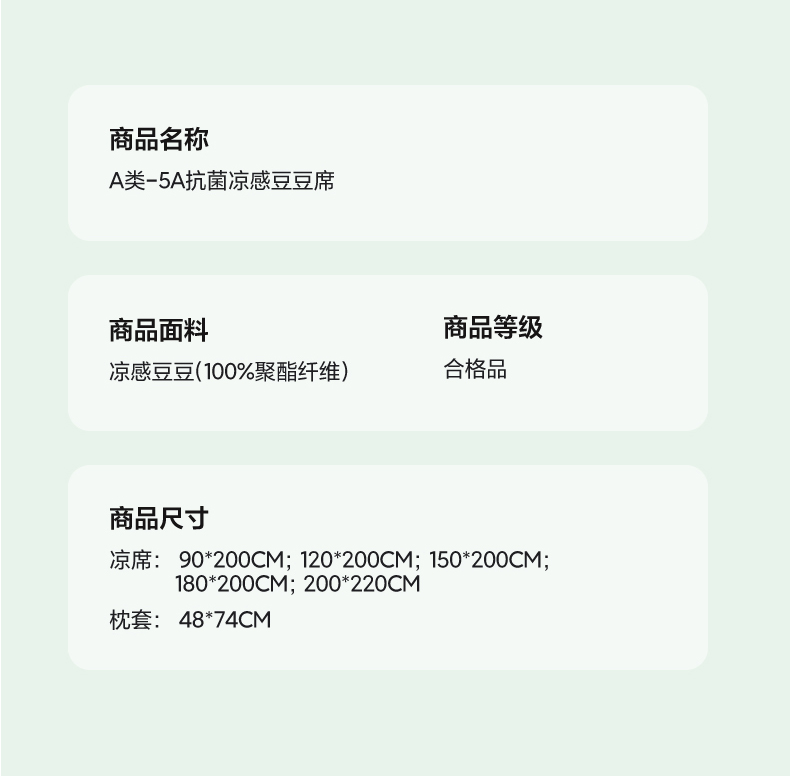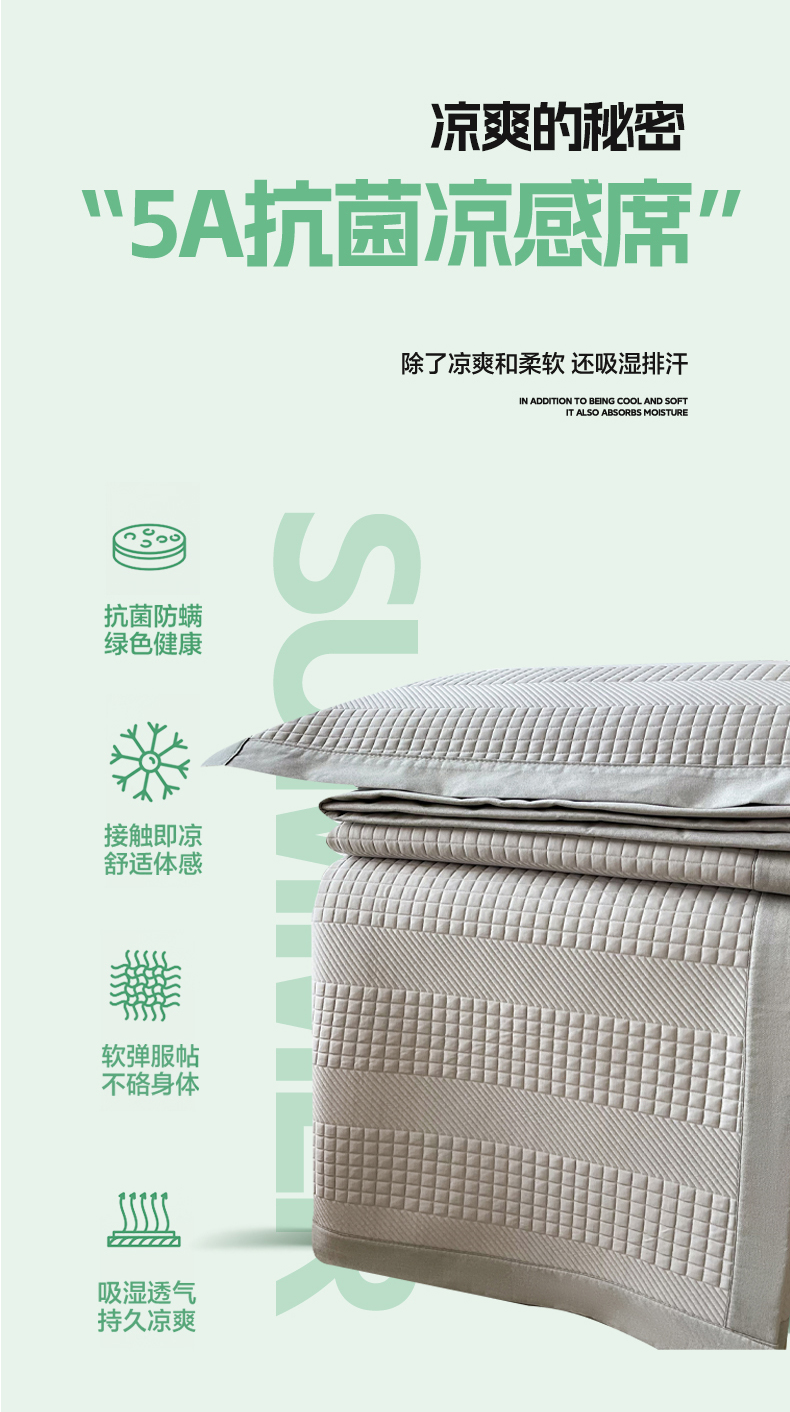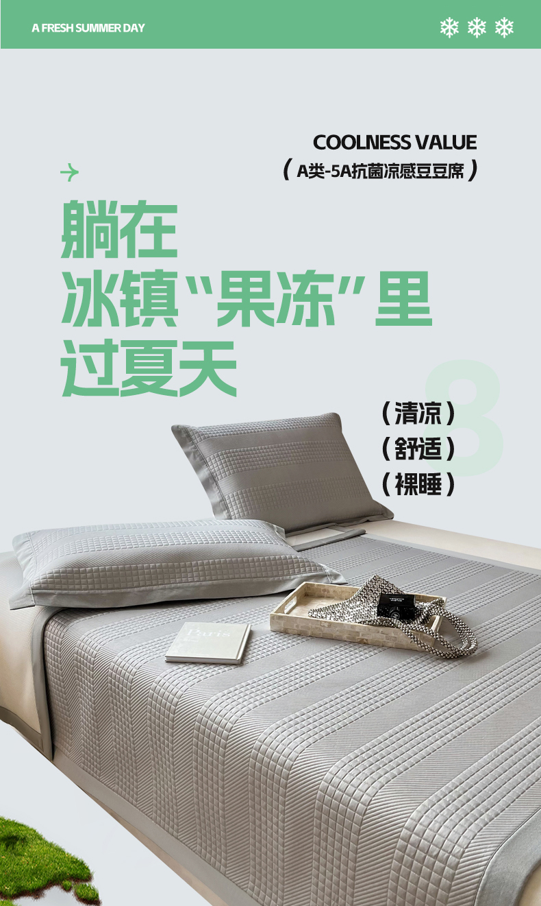 商品名称:全季家居 2024新款5A速冷PE简约系列凉豆豆席 格调-浅灰-床席款
