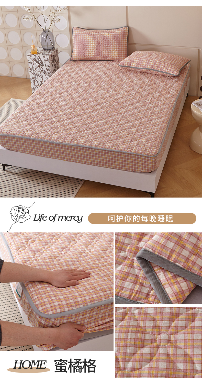 商品名称:杜先生 2024新款无印风水洗棉夹棉床笠 蜜橘格