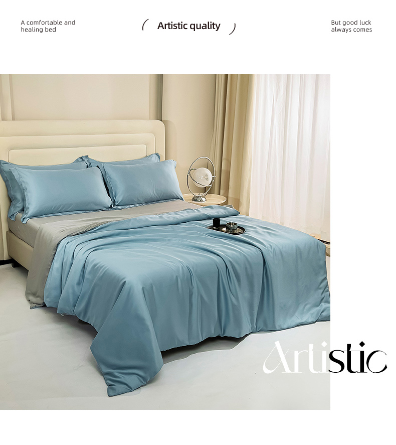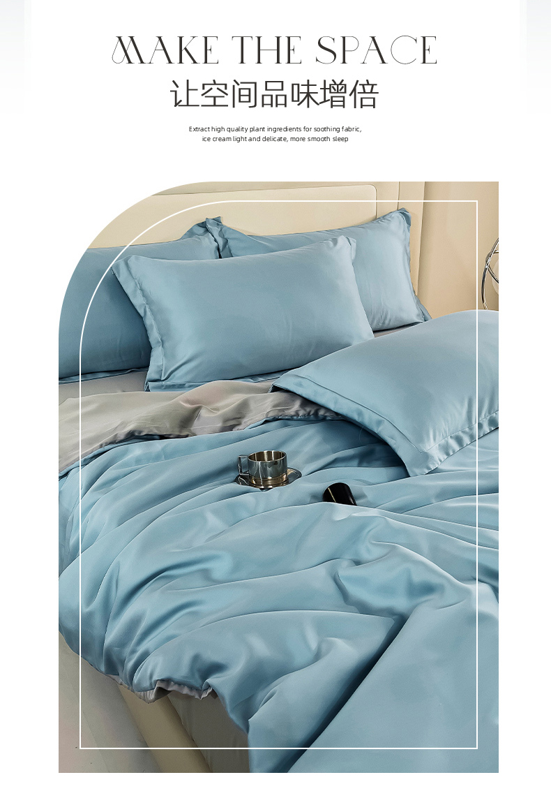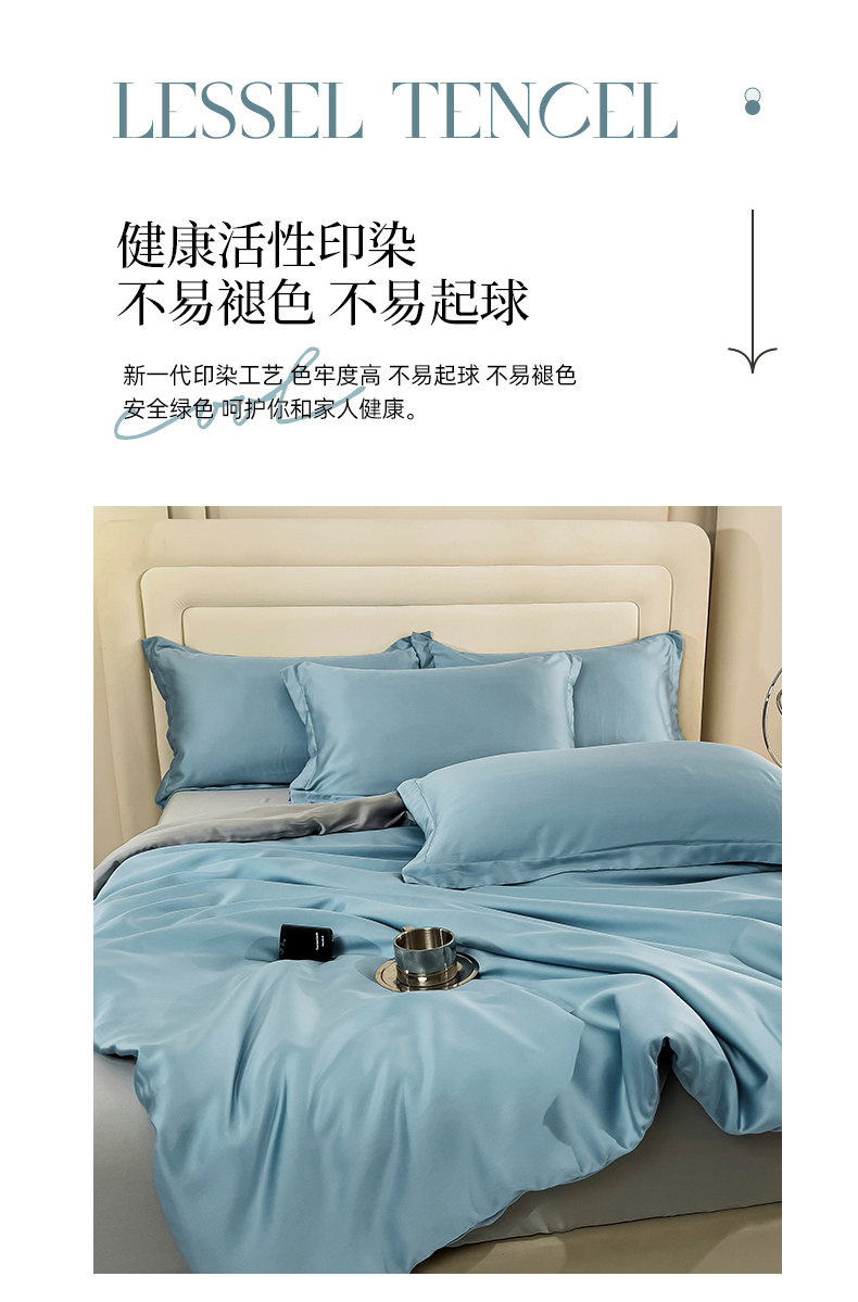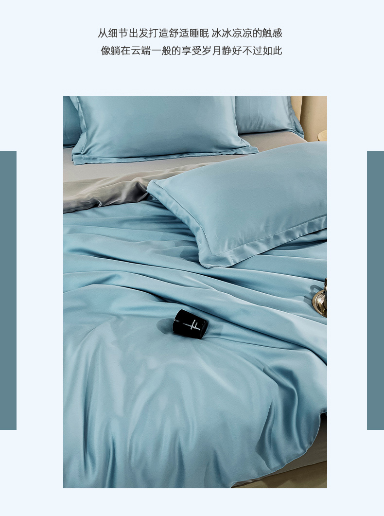 当前位置: 91家纺网 > 商品网购 > 床品套件 > 四件套 > 莱赛尔四件套 > 锦罗绣 2024新款80s奥地利进口兰精天丝四件套 蓝拼灰