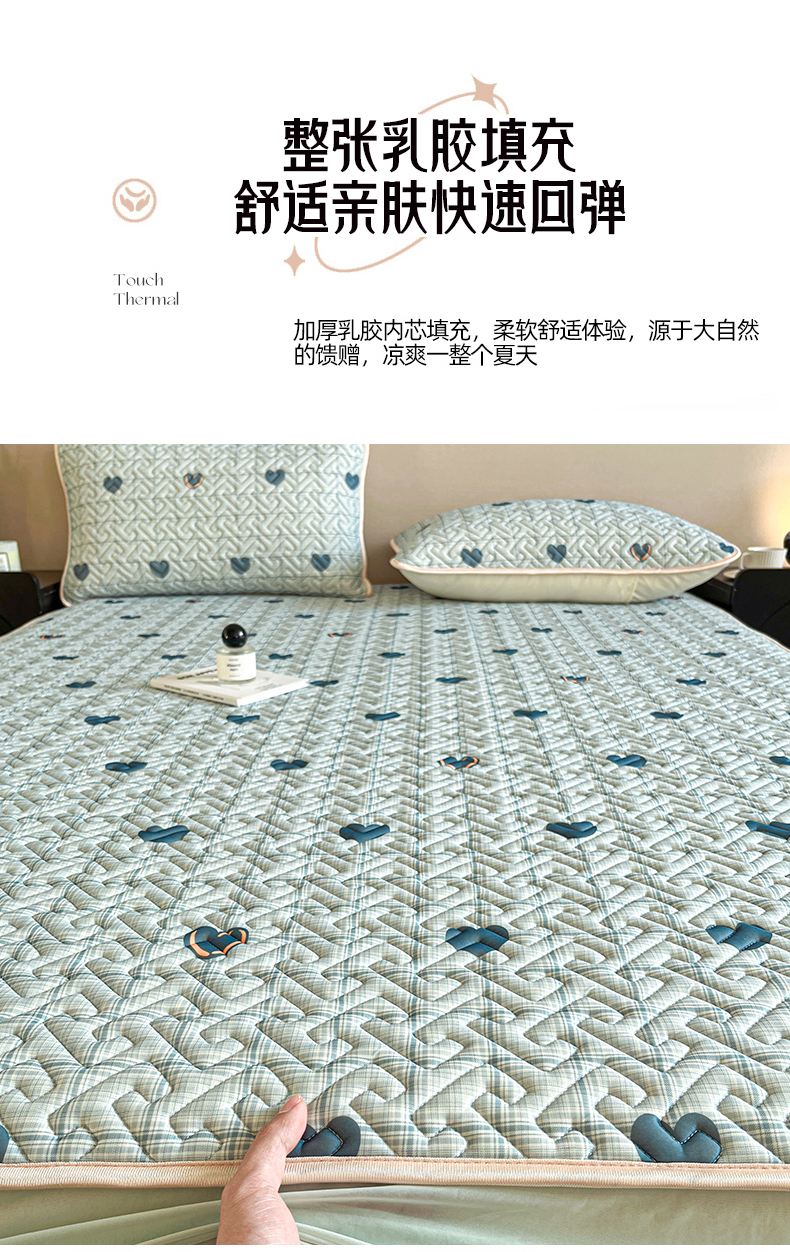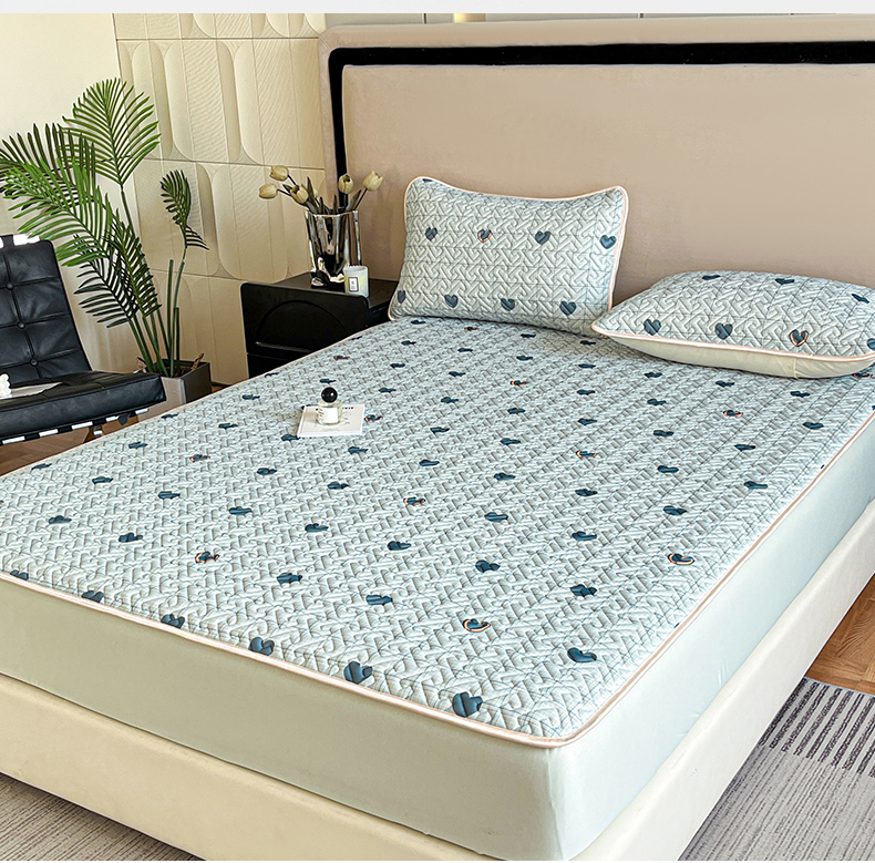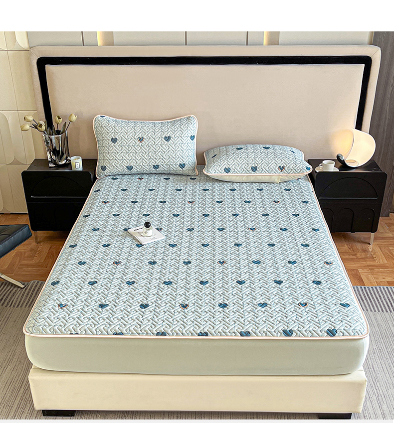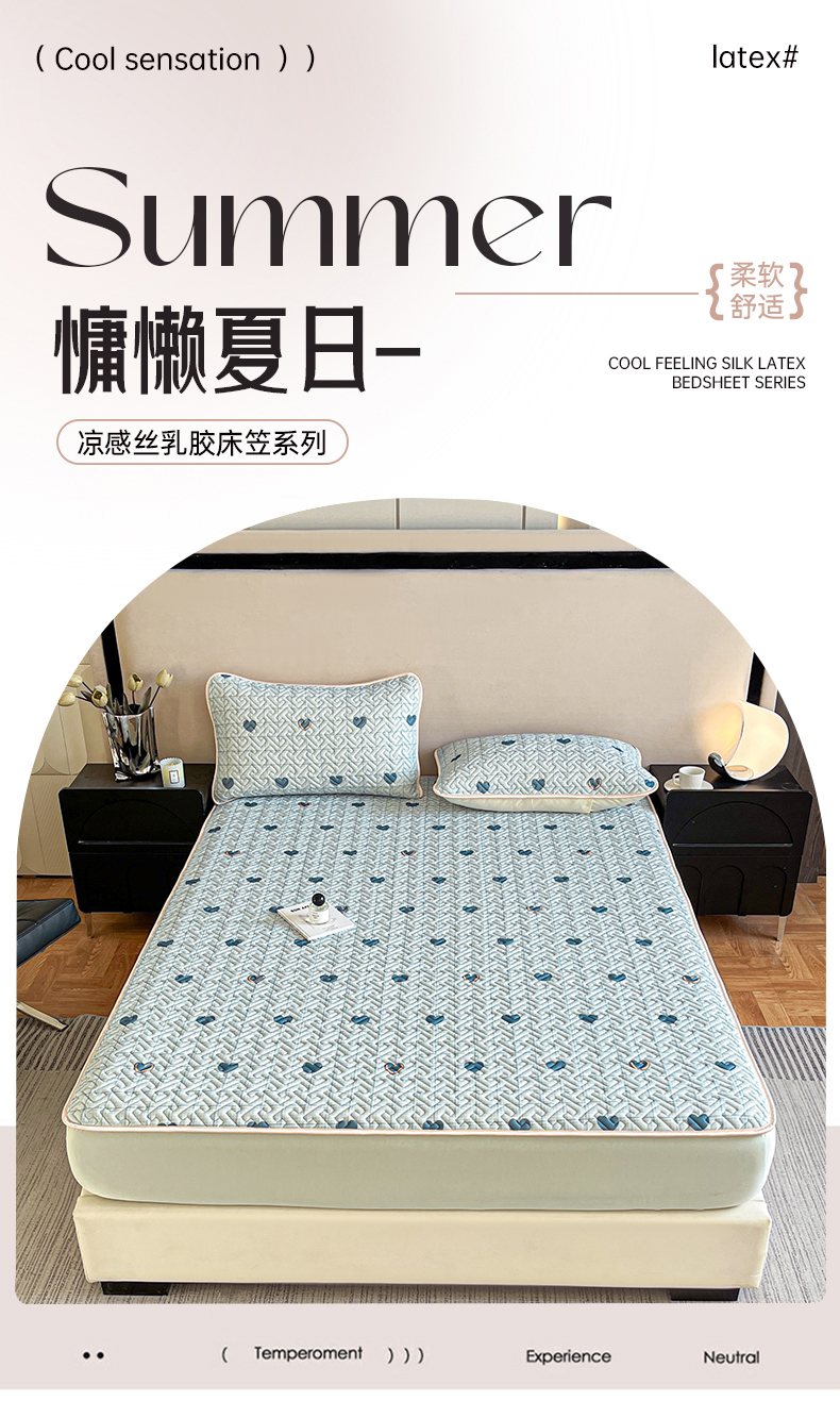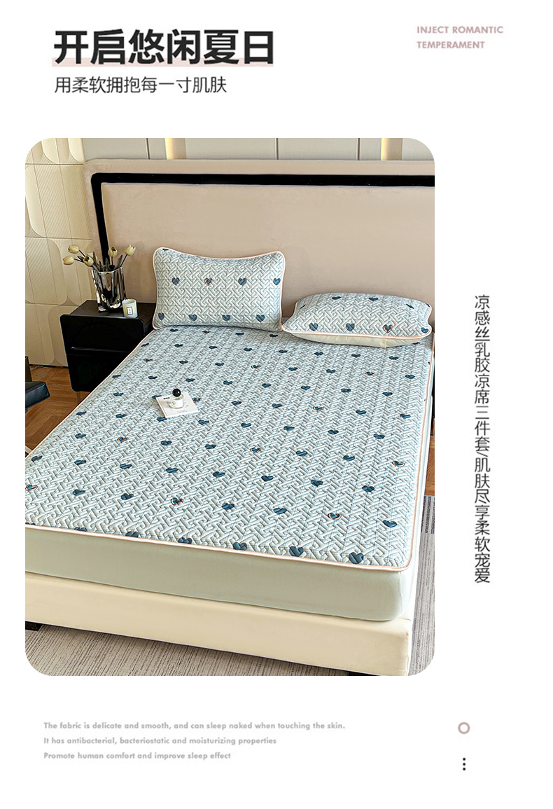 诺梵 2024年凉感丝印花乳胶凉席床笠三件套 蓝色爱心