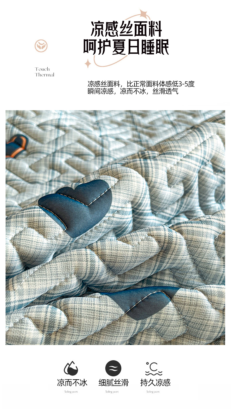 商品名称:诺梵 2024年凉感丝印花乳胶凉席床笠三件套 蓝色爱心