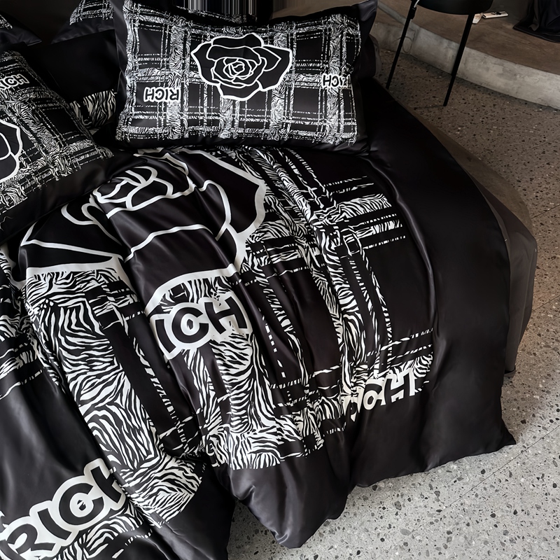 (总)丽斐纺织 2025新款水洗冰丝数码印花四件套,绿野,森林,巴宝,白山茶,彩蝶,格调,黑粉熊,黑色礼物,黑山茶,黑香,红玫瑰,灰丝豹,橘子洲,蓝熊,绿野仙踪,墨碟,寻彩熊,油画熊