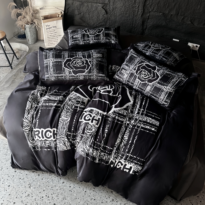 丽斐纺织 2024新款双面进口冰丝数码印花四件套水洗真丝四件套 冰丝黑山茶