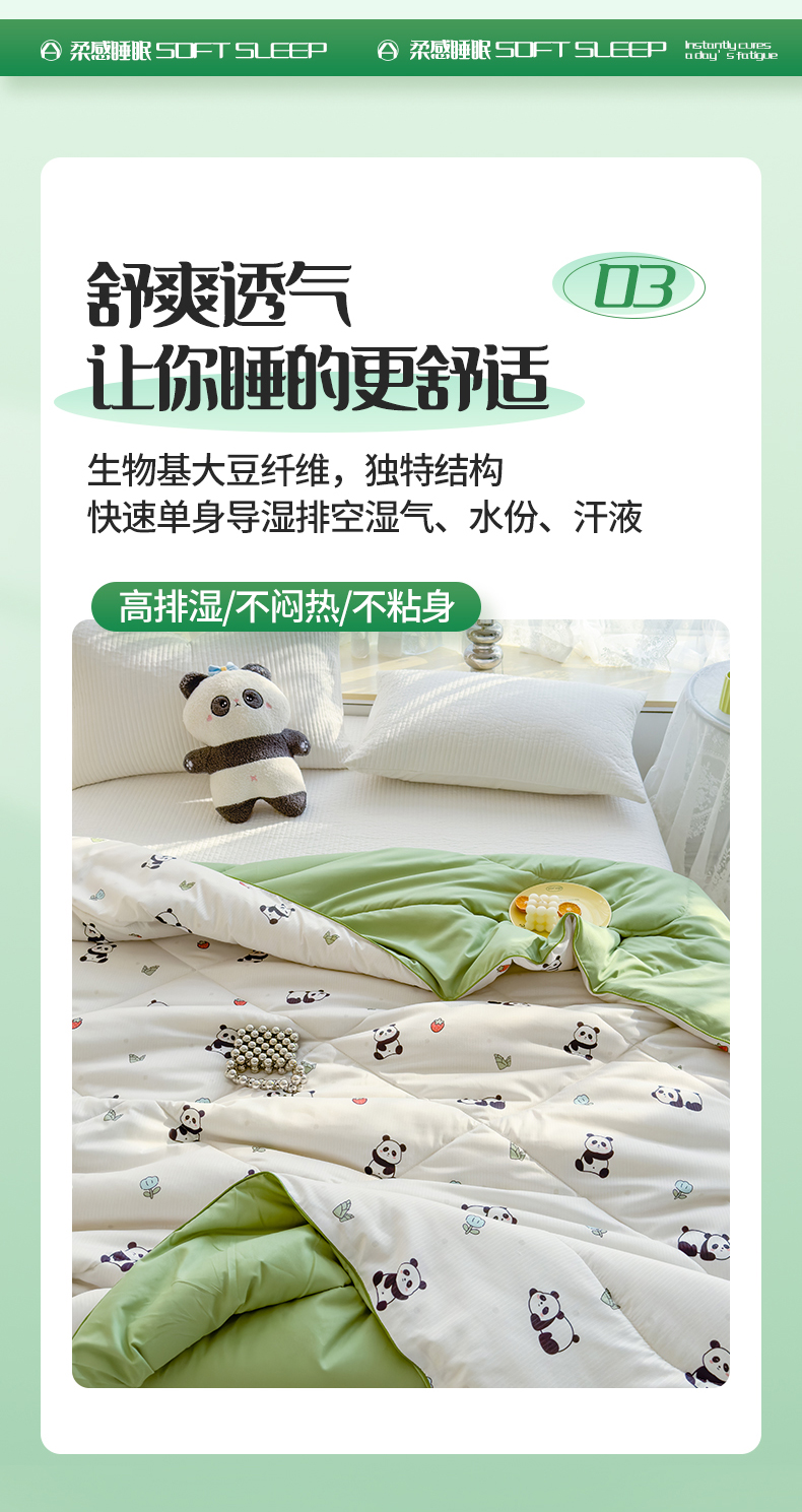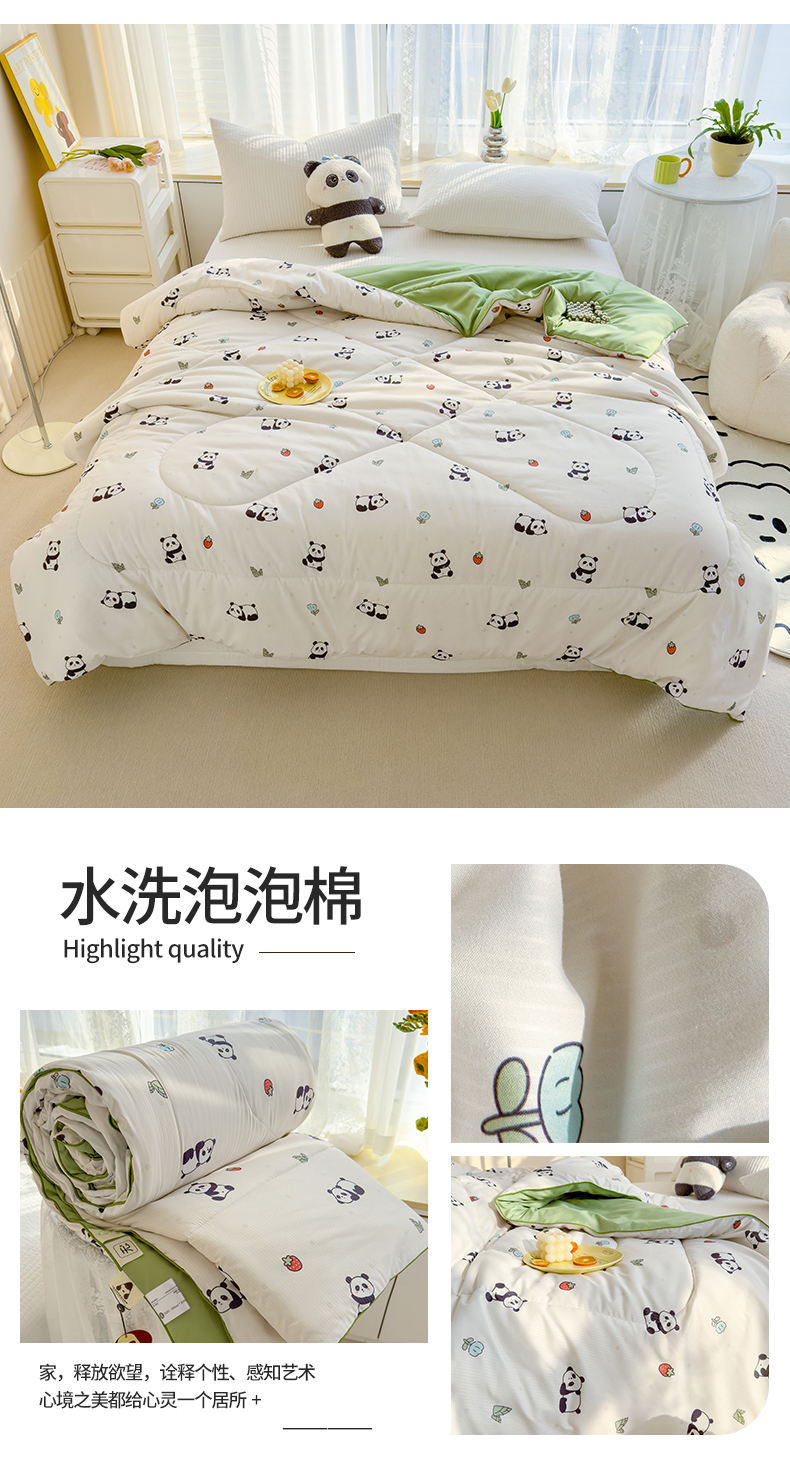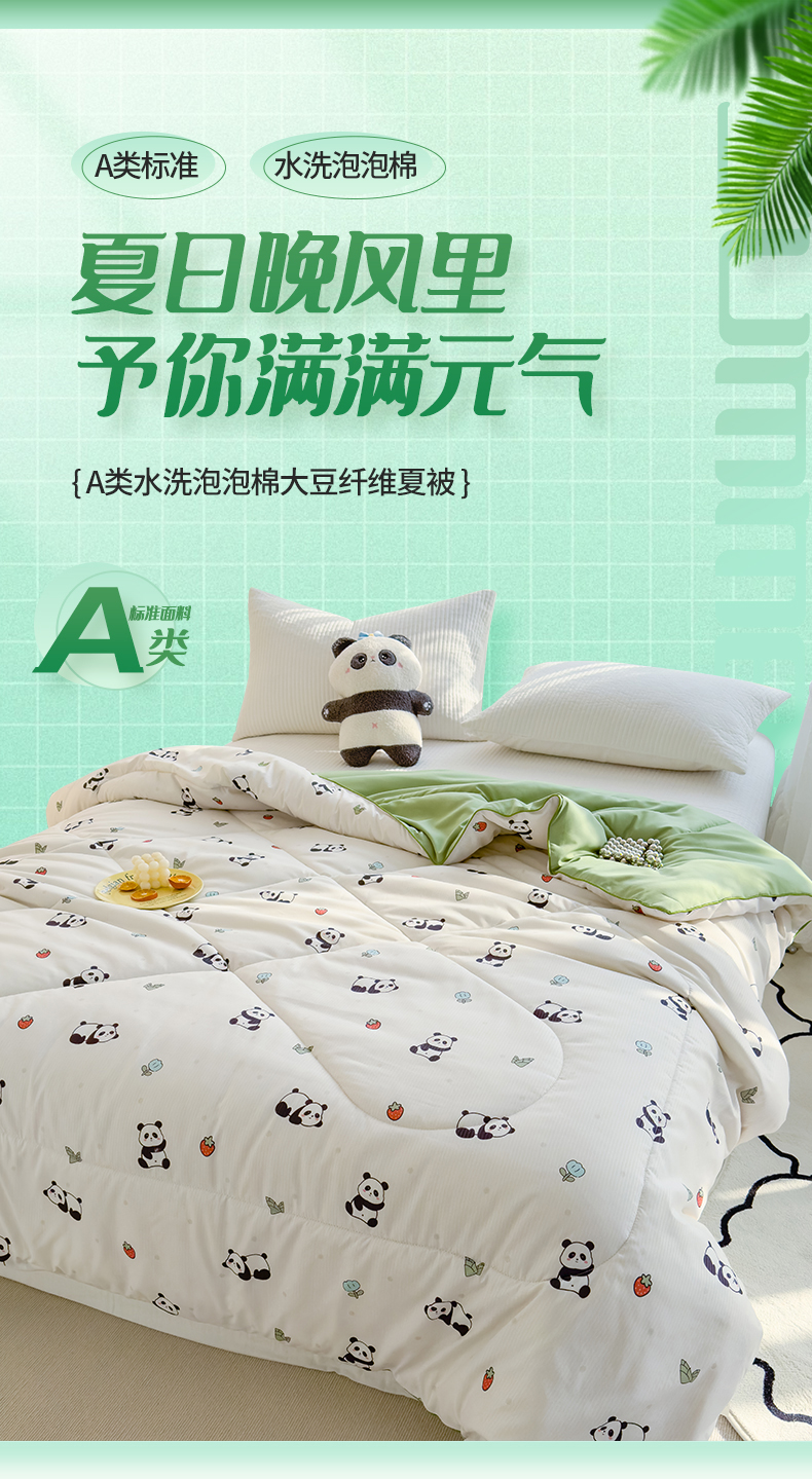 商品名称:花言狐语 2025新款A类水洗泡泡棉大豆纤维夏凉被 可爱熊猫