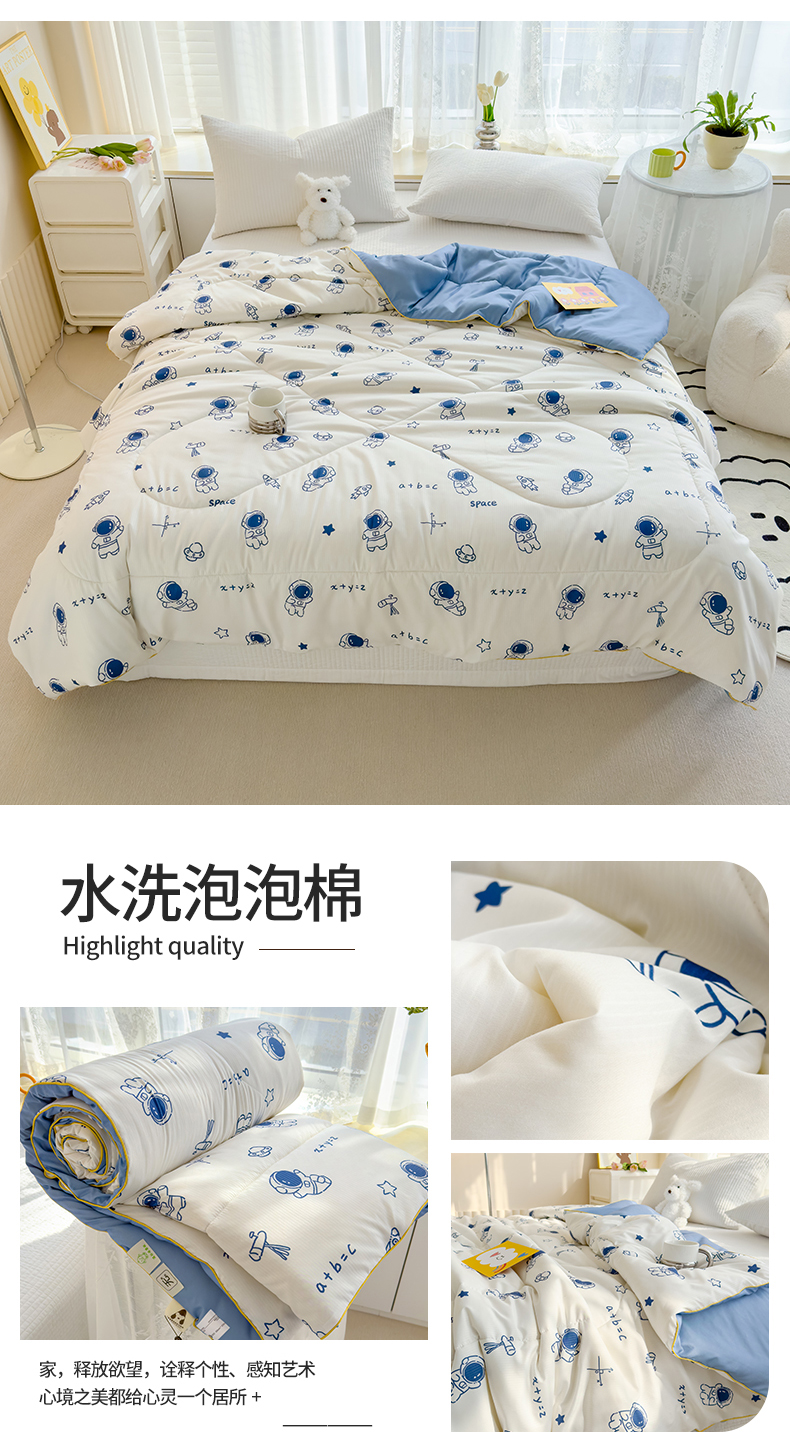 商品名称:花言狐语 2025新款A类水洗泡泡棉大豆纤维夏凉被 太空人