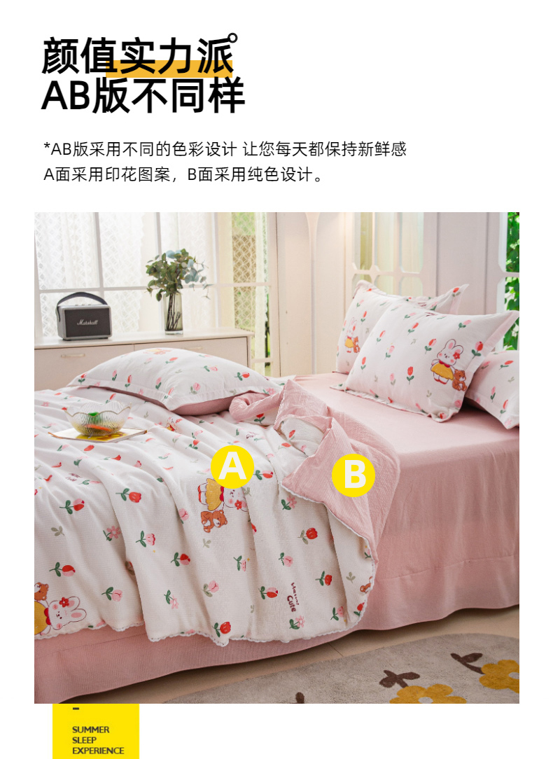 当前位置: 91家纺网 > 商品网购 > 床品套件 > 四件套 > 夏被四件套 > 帕芬鸟家纺 2025新款有氧泡泡棉夏被四件套 兔子小姐