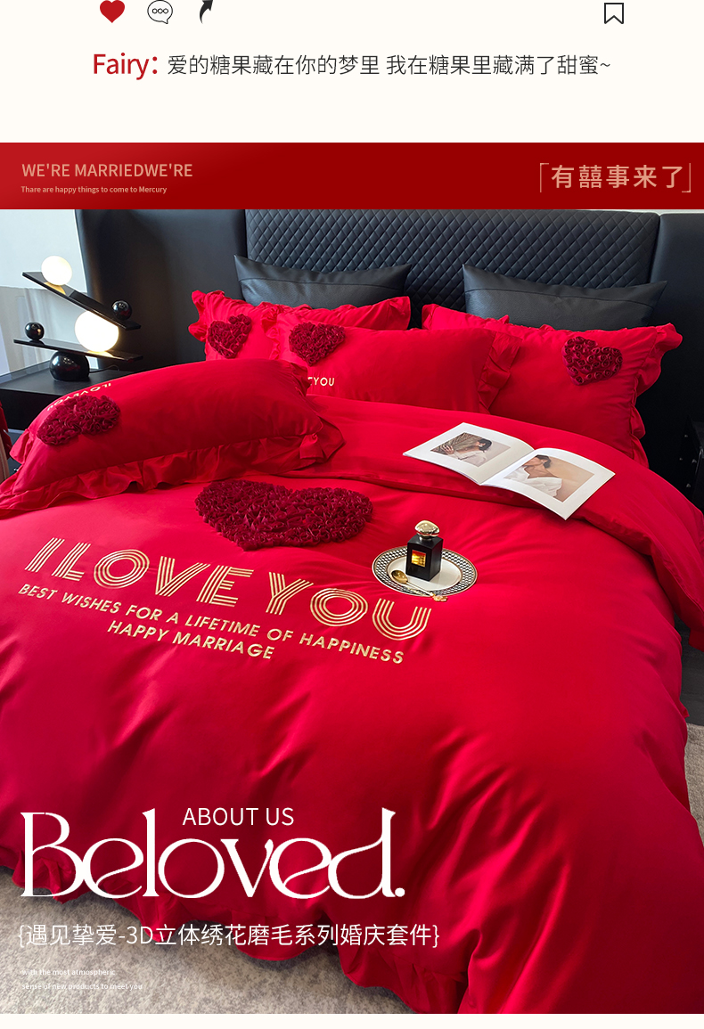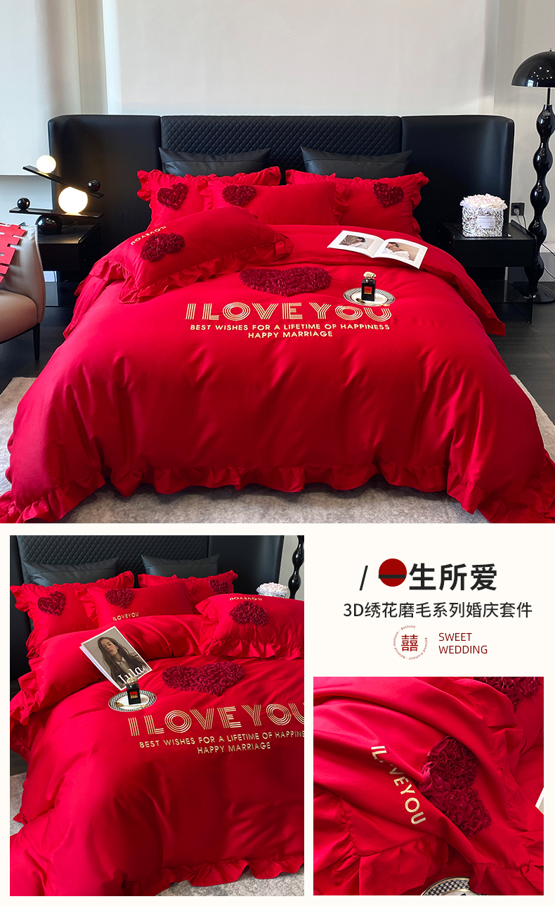 商品名称:优悦_新款磨毛婚庆3D立体绣花四件套 一生所爱