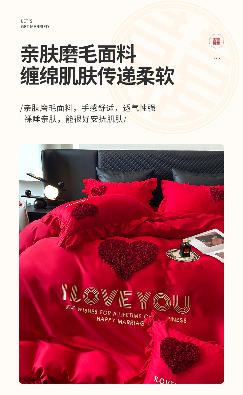 (总)优悦 2023新款轻奢磨毛婚庆毛巾绣四件套,喜愿,喜爱,小确幸,爱意满满,玫瑰花语,甜蜜蜜,相爱,美满