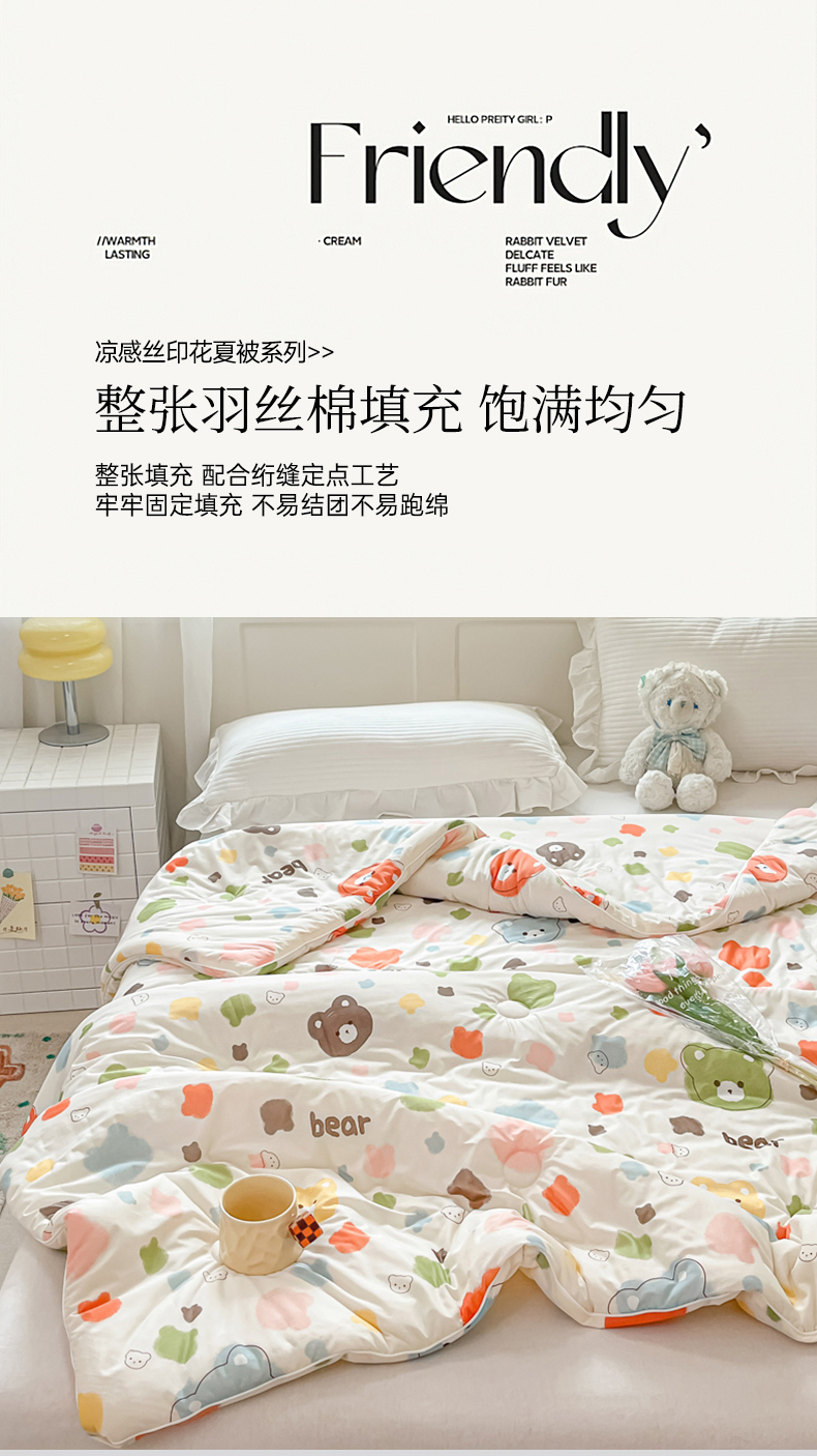 商品名称:吉祥家纺 2024新款凉感丝印花夏被 玩偶小能
