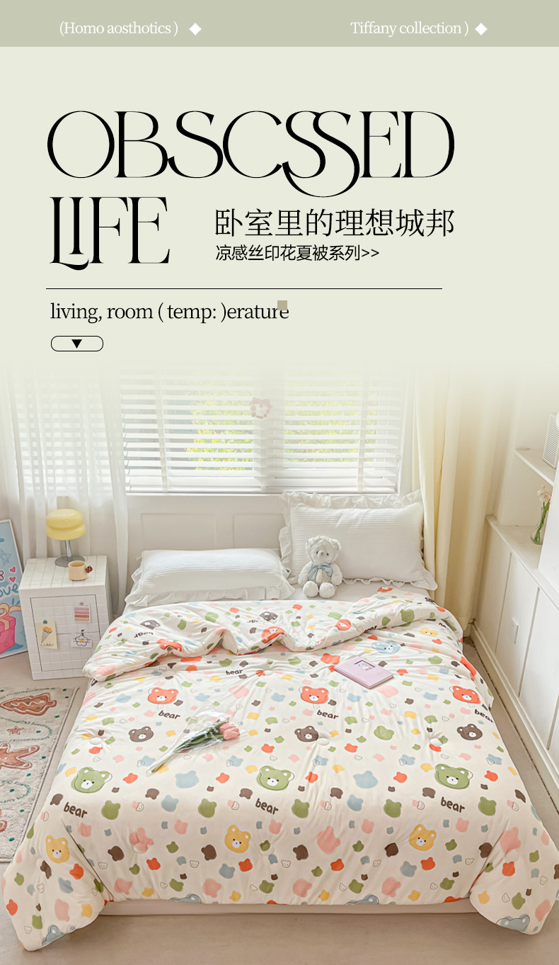 吉祥家纺 2024新款凉感丝印花夏被 玩偶小能