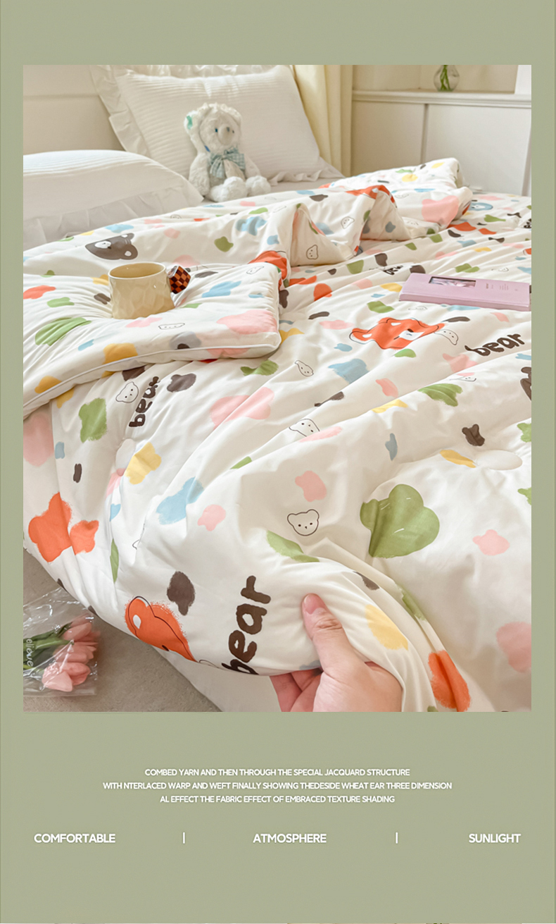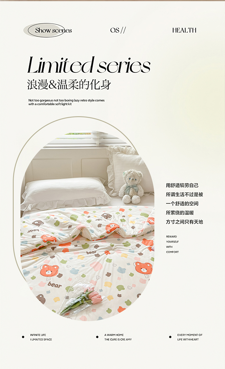 (总)吉祥家纺 2025新款印花花边款夏凉被夏被四件套,领结小狗,小兔与花,莓果小熊,星星南瓜,樱桃小兔,草莓多多,花簇小兔,两只小狗,植物乐园,方格多多,柿子花园,花团锦簇