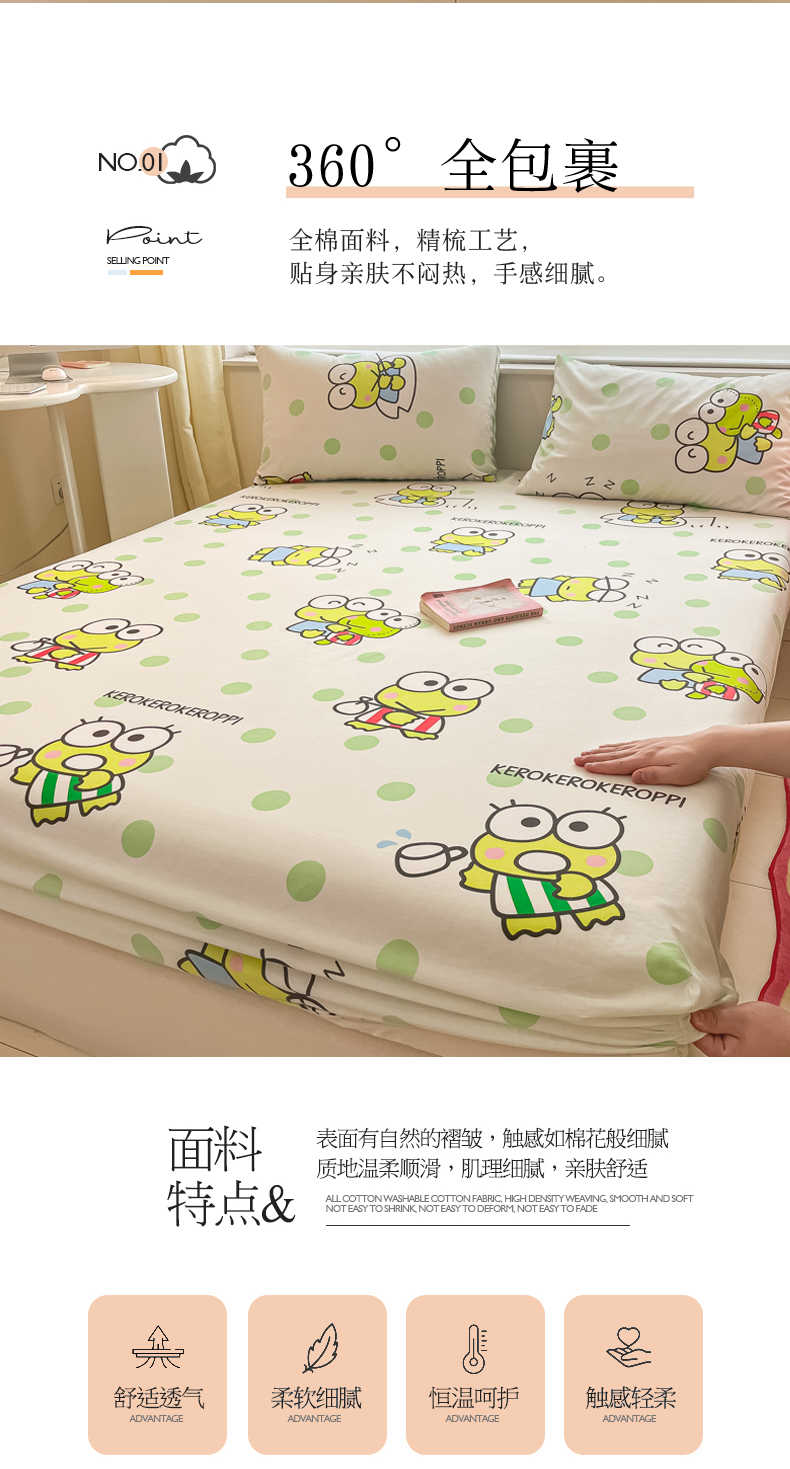 金爱家 2024新款纯棉小版单品床笠 床笠款-清新青蛙