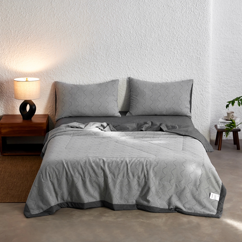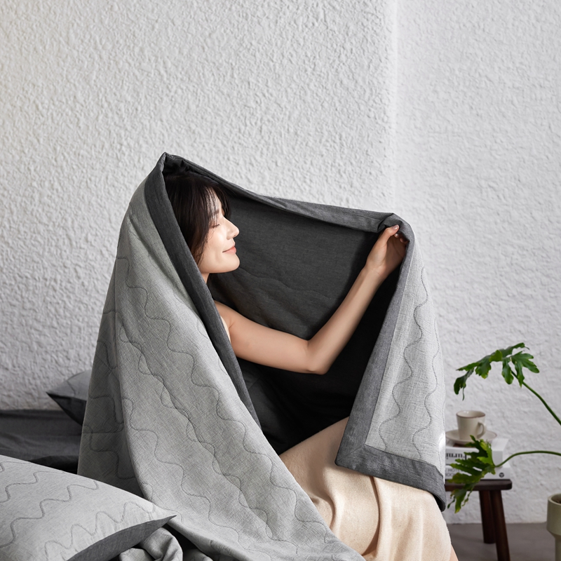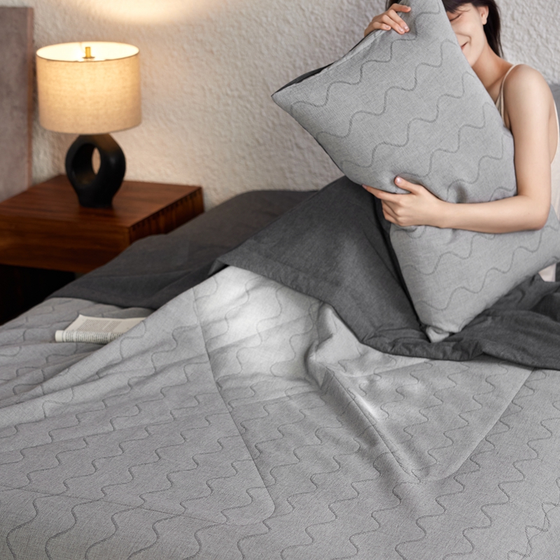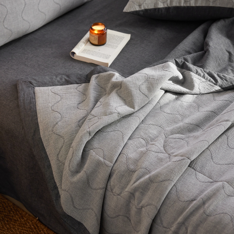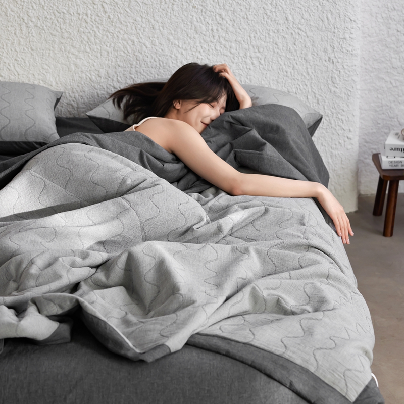 安莱生活 2024新款色织双层纱提花波浪三系列夏被及夏被四件套--竖纹波浪 竖纹-深灰