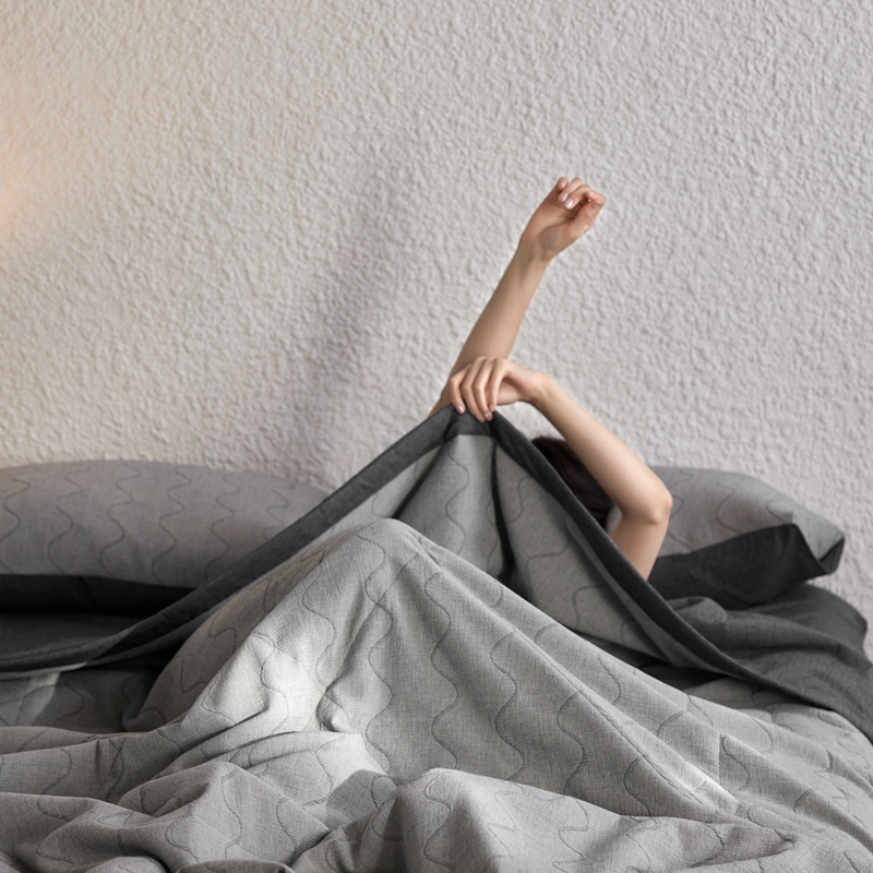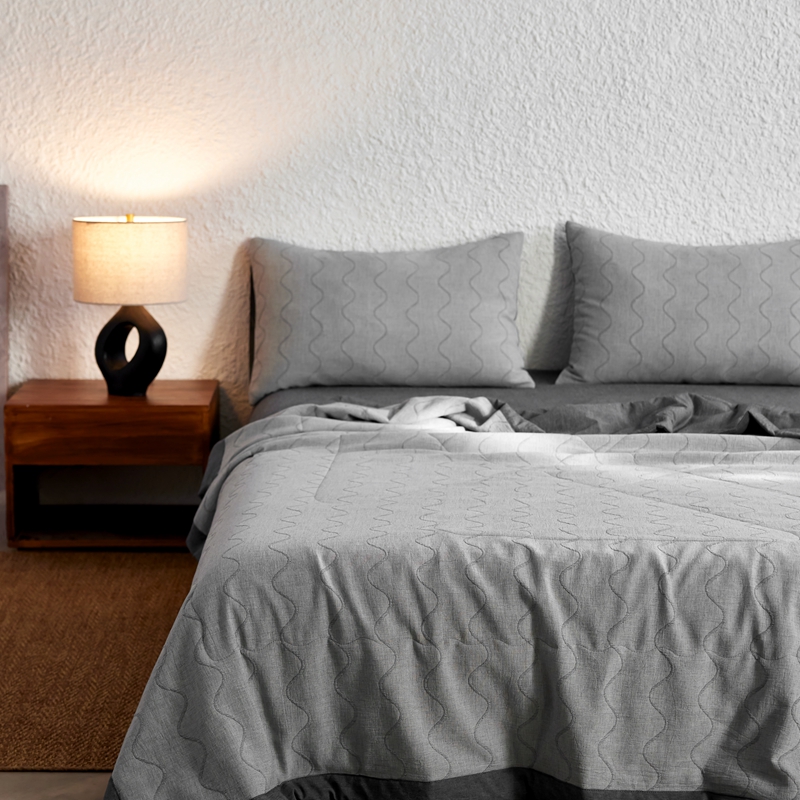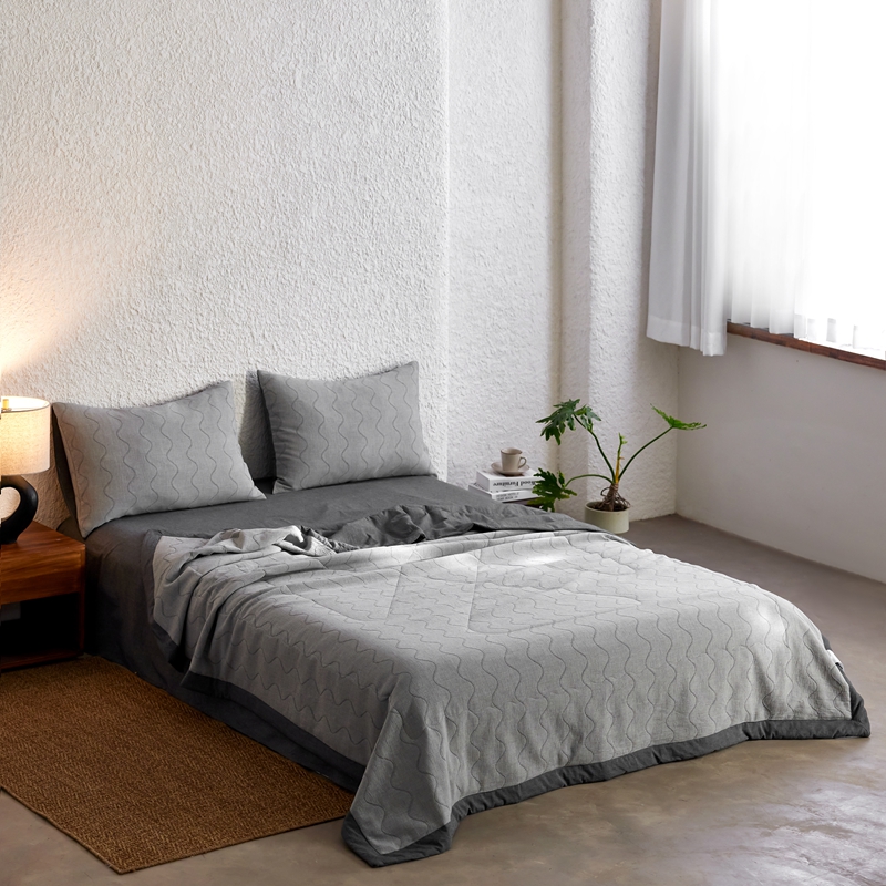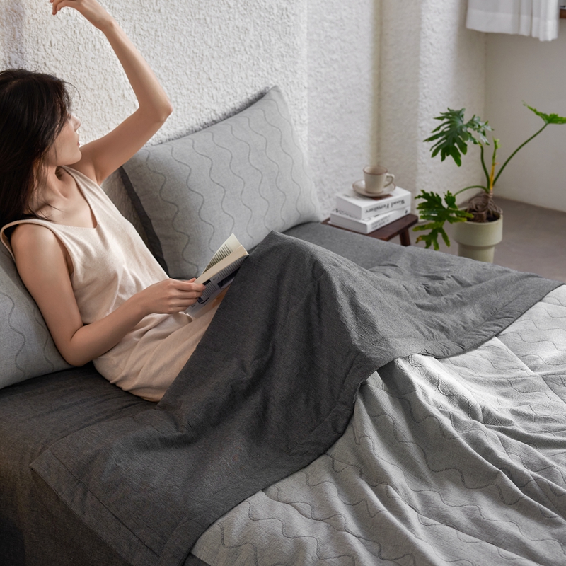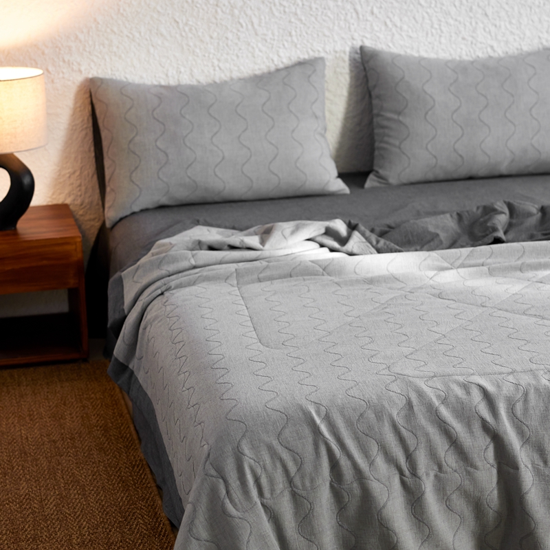 安莱生活 2024新款色织双层纱提花波浪三系列夏被及夏被四件套--竖纹波浪 竖纹-深灰