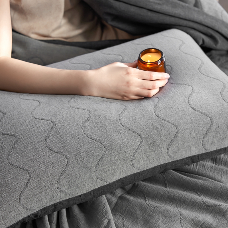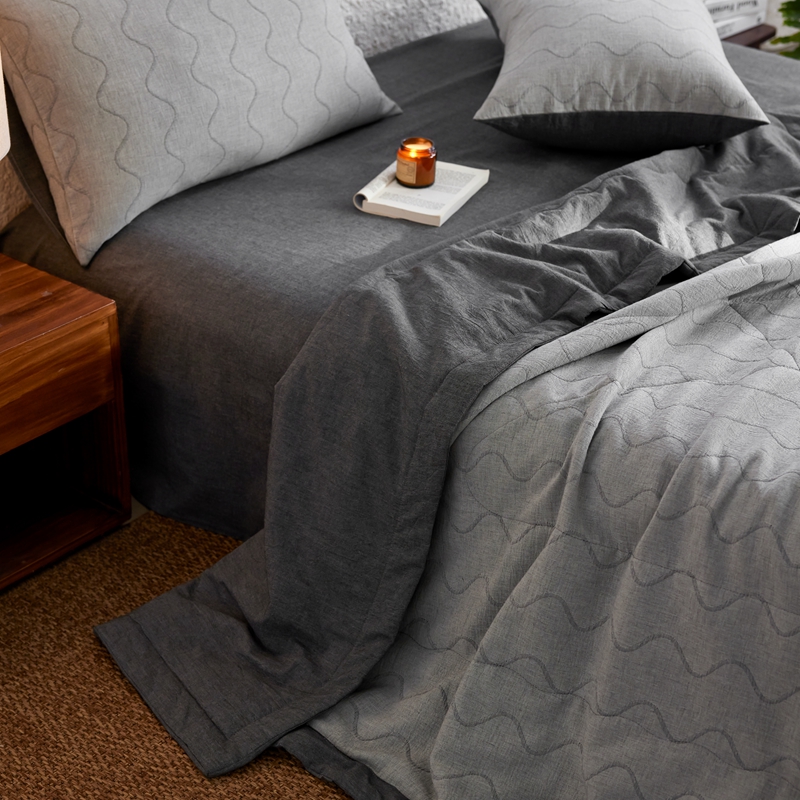 商品名称:安莱生活 2024新款色织双层纱提花波浪三系列夏被及夏被四件套--竖纹波浪 竖纹-深灰