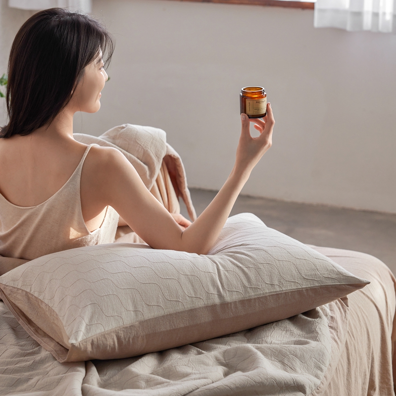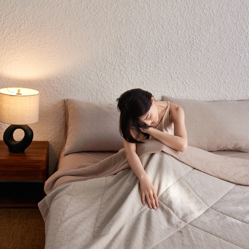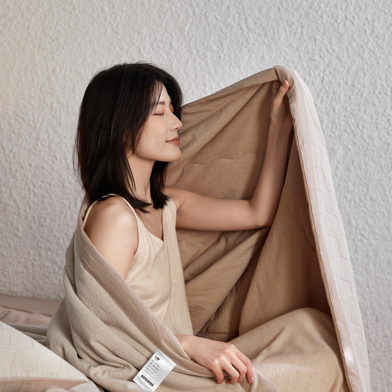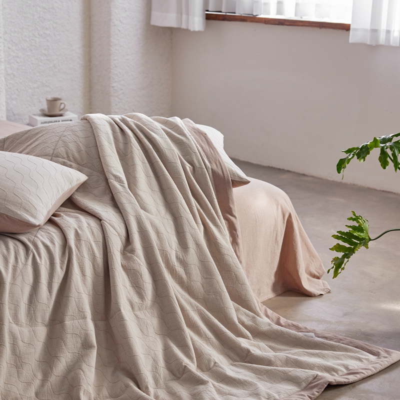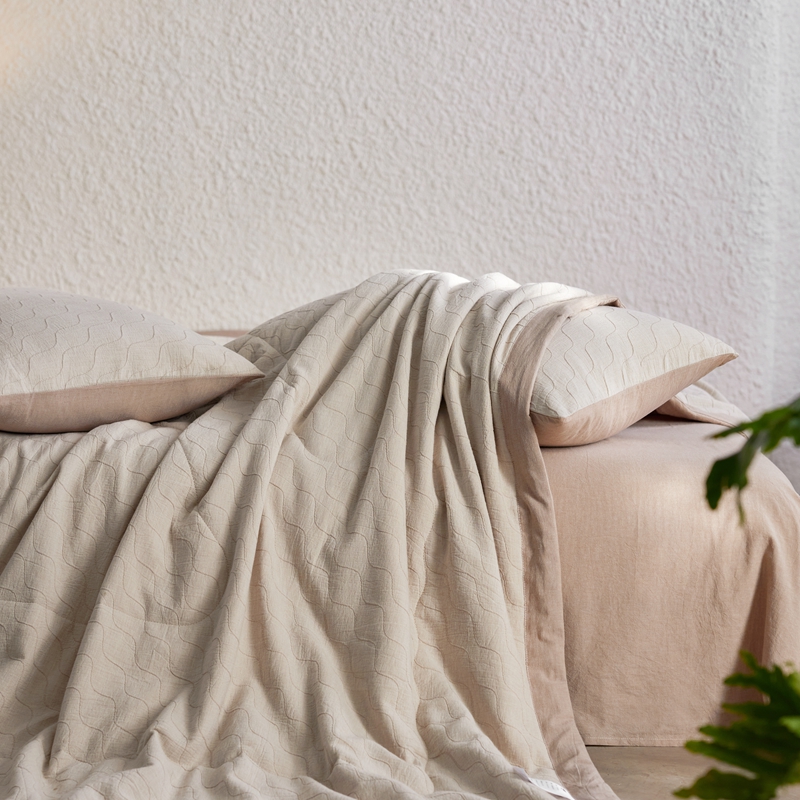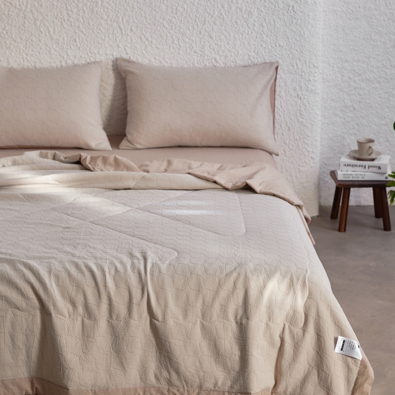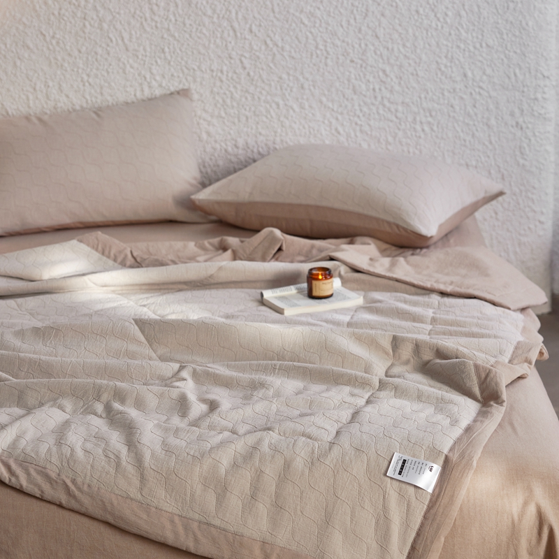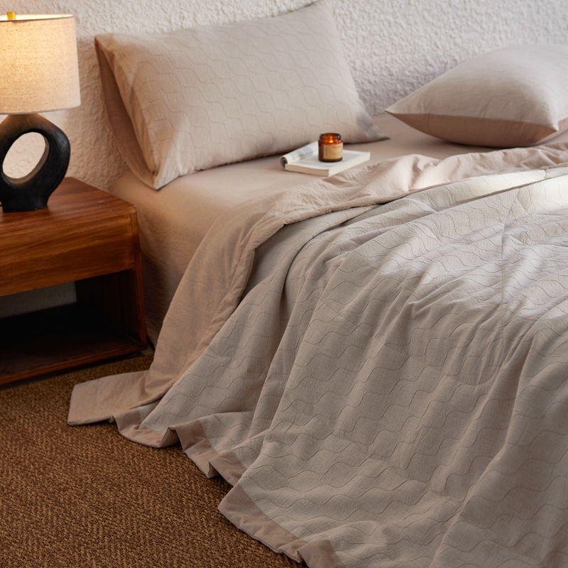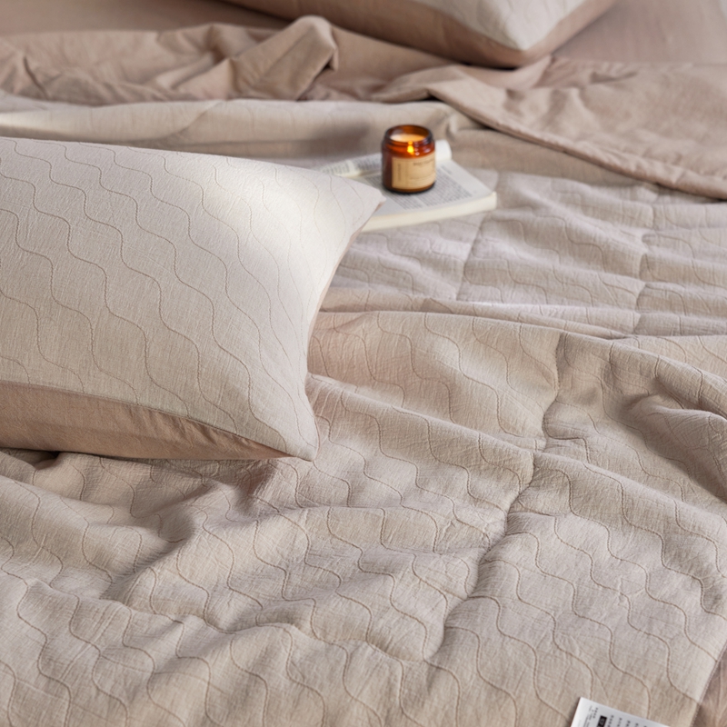 商品名称:安莱生活 2024色织双层纱提花波浪三系列夏被及夏被四件套--斜纹波兰 斜纹-卡其