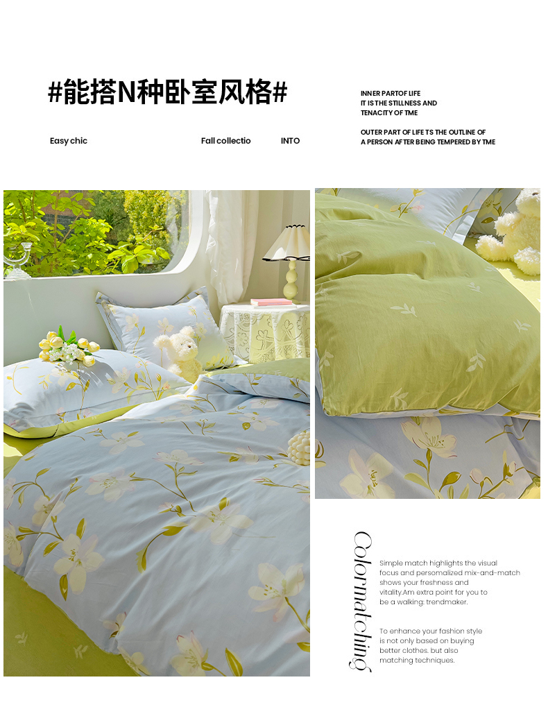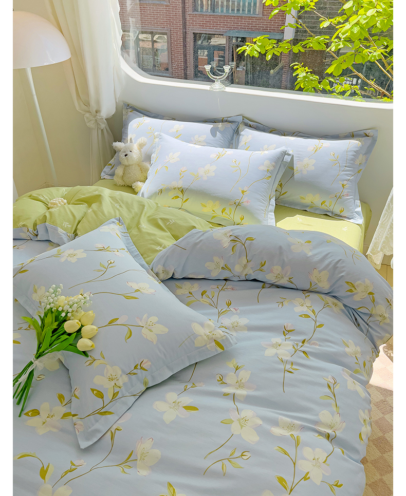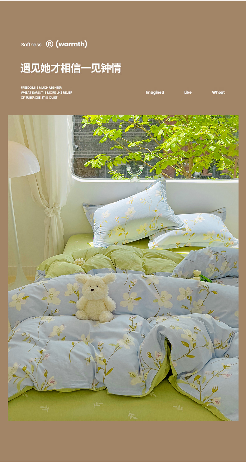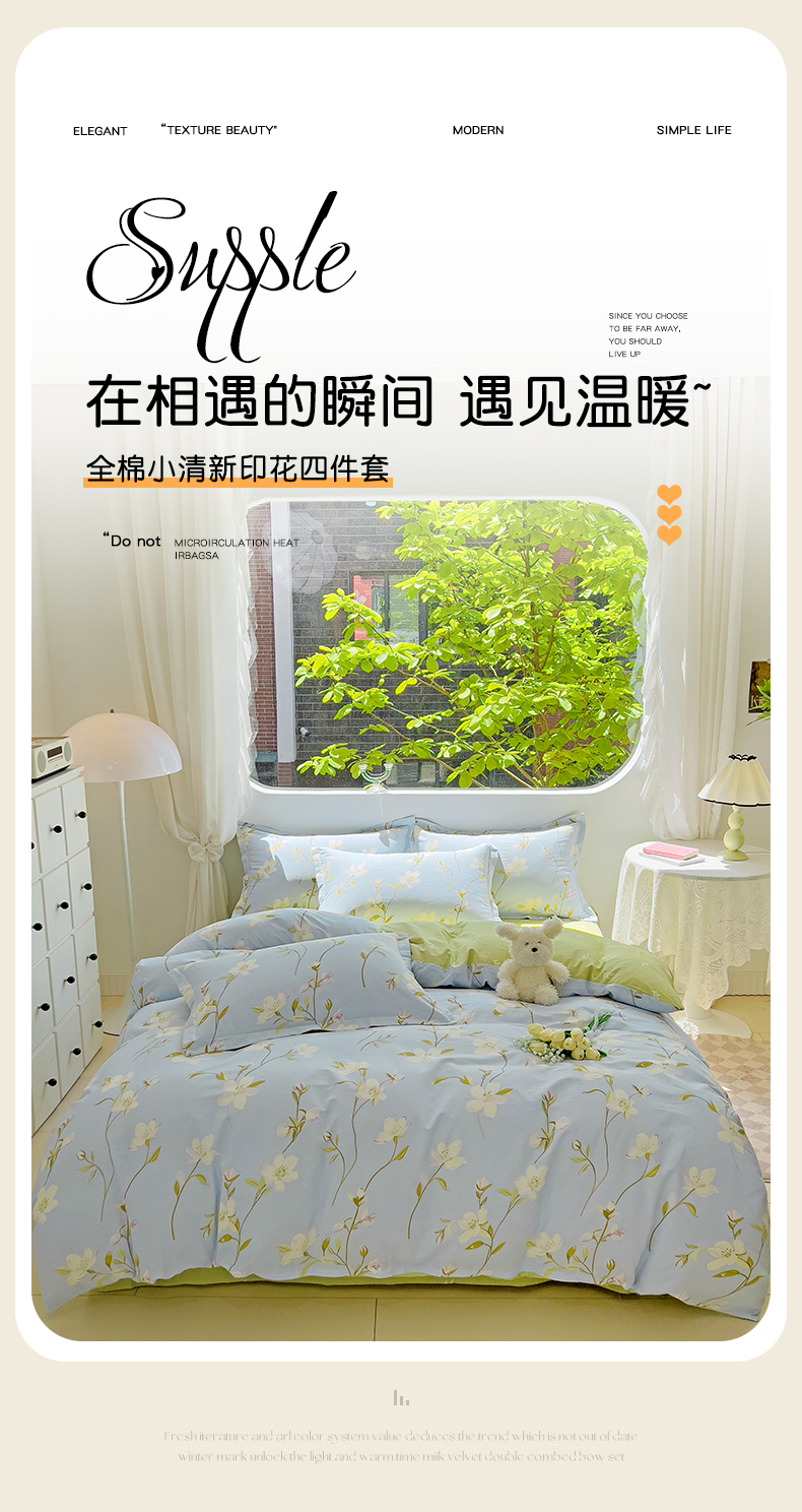 暖芯优选 204新款直播爆款全棉-ins印花系列四件套纯棉三件套床单床笠 仲夏
