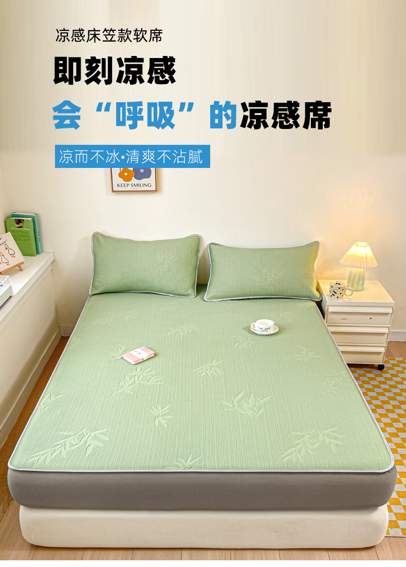 吉象家纺 2024新款凉豆豆凉感软席凉席 竹叶绿