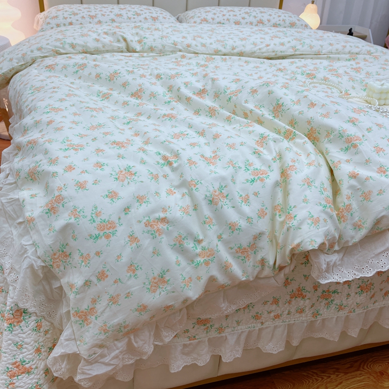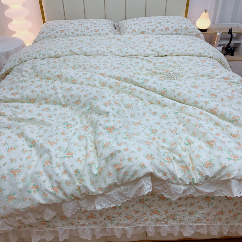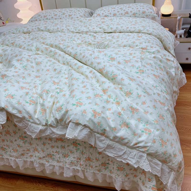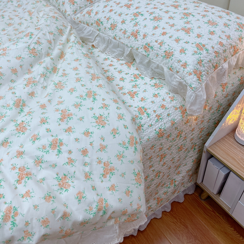 暖居 2024新款砂洗棉花被套全棉床盖四件套绗缝夹棉纯棉床盖三件套 木兮