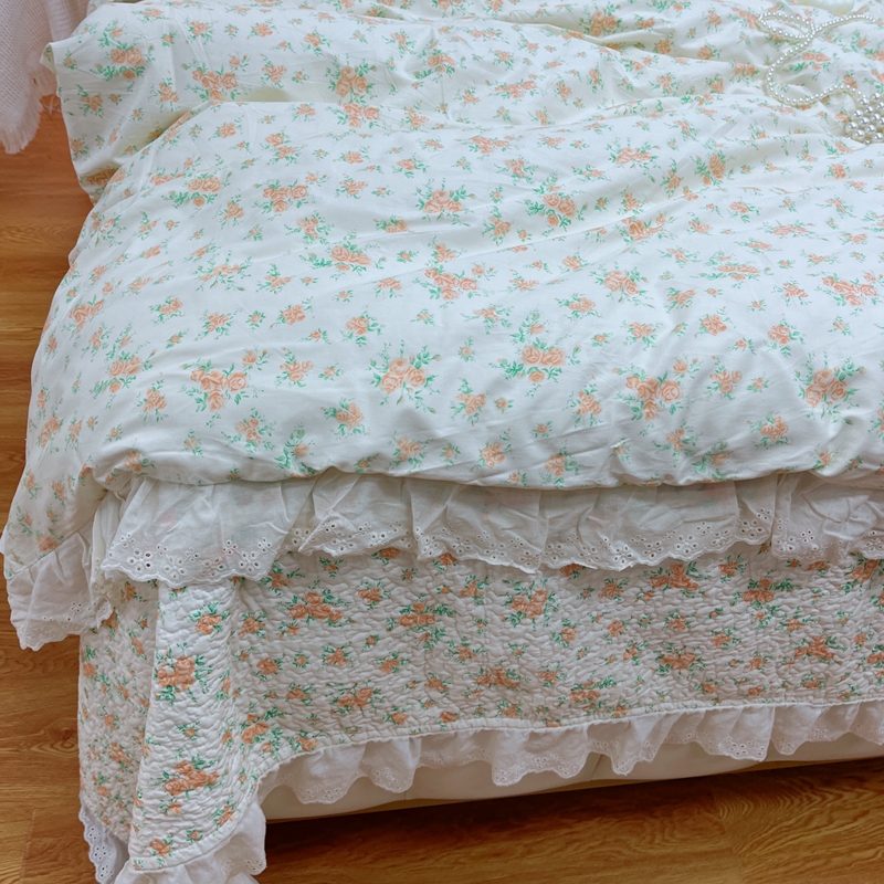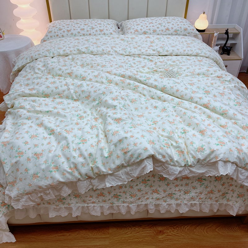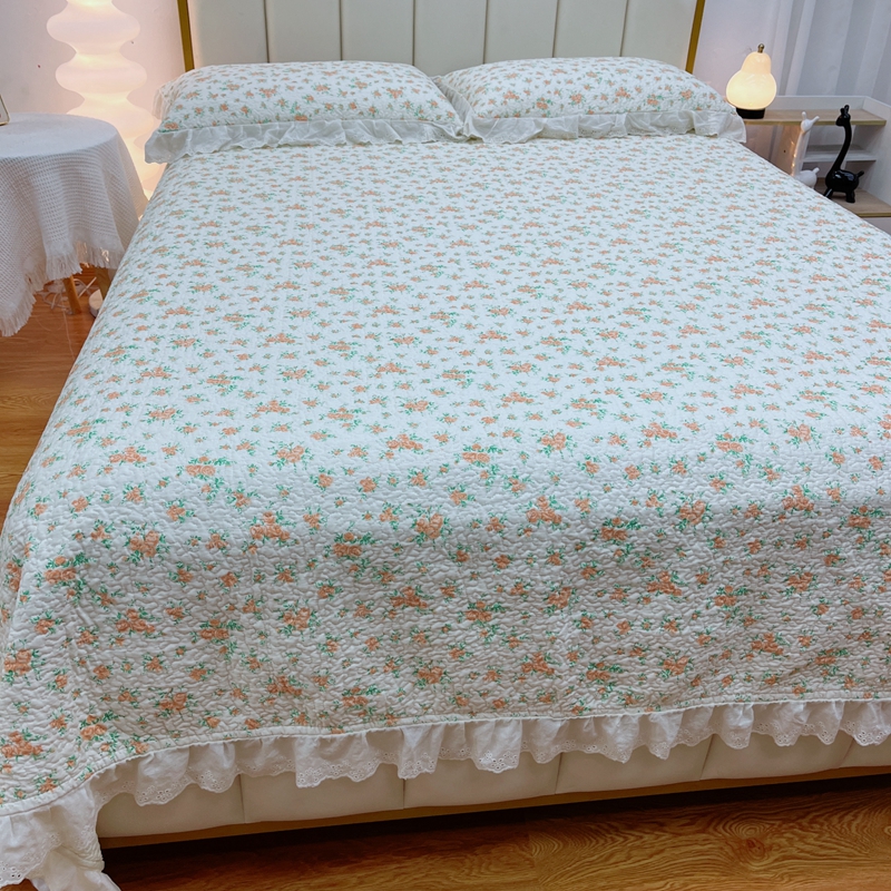 商品名称:暖居 2024新款砂洗棉花被套全棉床盖四件套绗缝夹棉纯棉床盖三件套 木兮
