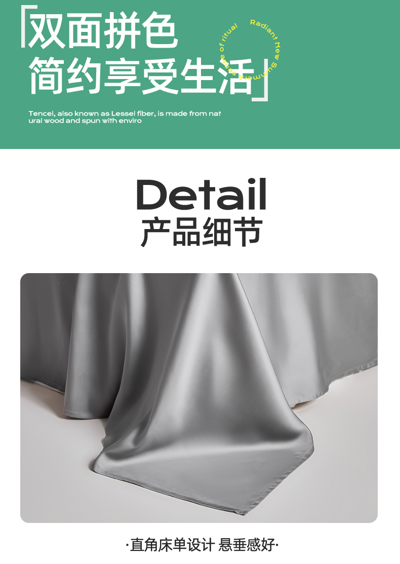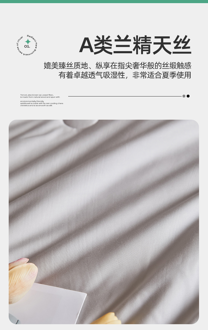 商品名称:佳汐蓝 2024新款高支高密兰精天丝纯色双拼夏被四件套 椰子灰+经典灰